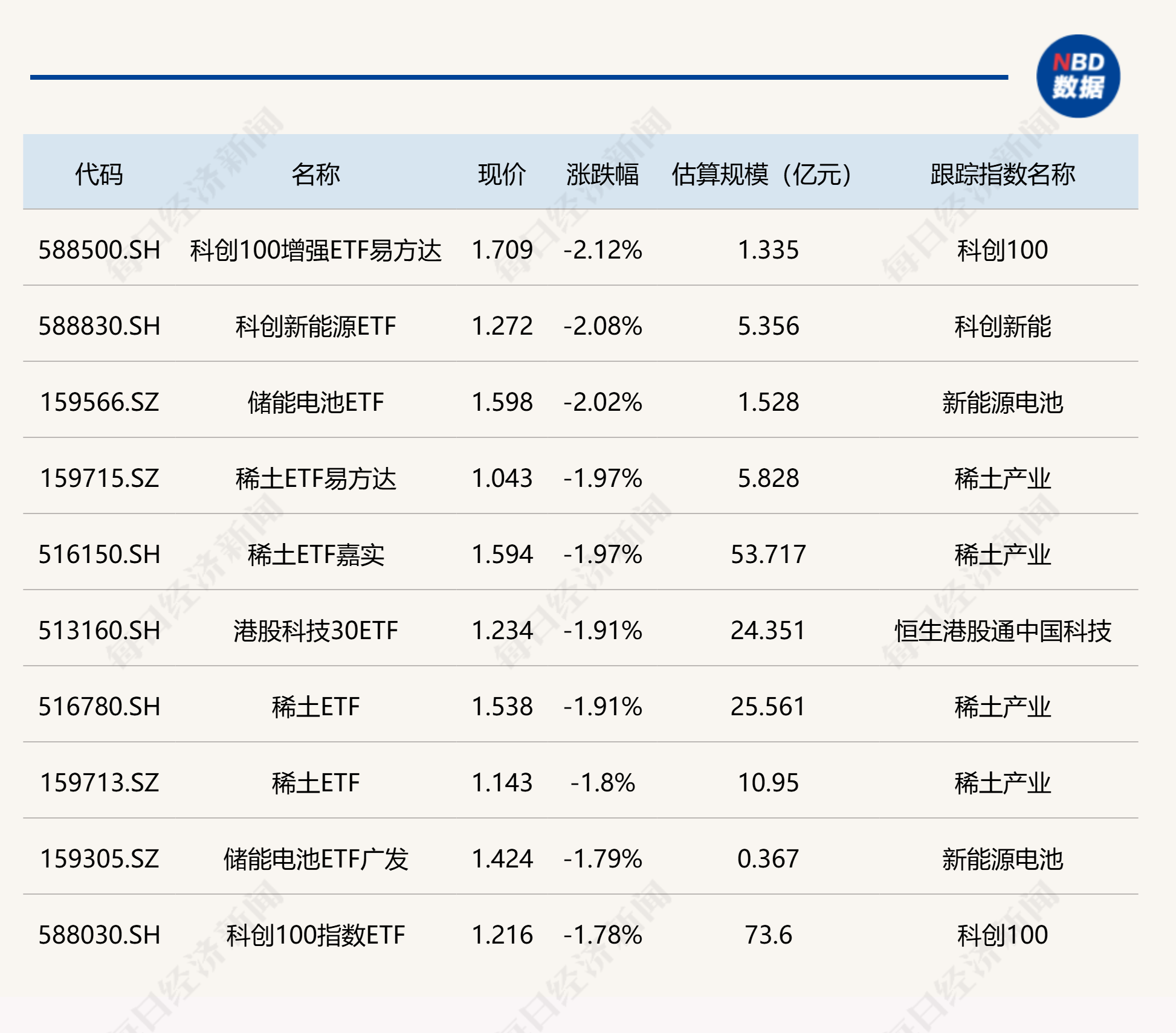 每经记者|叶峰 每经编辑|肖芮冬 市场全天震荡调整,三大指数涨跌不一。从板块来看,数字货币概念股集体大涨,油气股表现活跃,银行股逆势走强。下跌方面,高位股集体调整。 ETF上涨方面,化工、农业相关ETF涨近2%。 有券商表示,目前,大多数养殖上市公司头均市值(对应2025年预估出栏量)仍处于历史底部区间,距离历史均值有较大上升空间,长期投资价值凸显。 下跌方面,新能源、稀土相关ETF跌约2%。 有券商表示,在“碳中和”等政策的持续推动下,新能源汽车、风力发电及节能电机等高端磁材需求增长迅速。此外,传统制造领域需求复苏及人形机器人加速落地为稀土需求注入增长动力。 封面图片来源:每日经济新闻 |