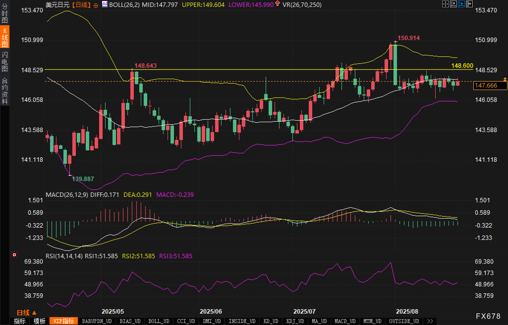 周四美元兑日元(USD/JPY)呈现小幅上涨,北美时段交投于147.70附近。日本周五即将发布7月通胀数据,市场预计核心CPI将降至3.0%,相比6月的3.3%有所放缓。这一数据将对市场预期和日元走势产生直接影响。 ![]() 日本的通胀预计继续放缓,核心CPI的降温反映了经济复苏中的一些不稳定性。日本央行(BoJ)虽已在2025年1月将利率上调至0.5%,但未能迅速跟进进一步加息。日本央行行长植田日前强调,央行将等待国内需求和工资推动的潜在通胀稳定在2%时,才会进一步加息。鉴于此,尽管通胀数据逐步趋缓,但市场仍预计日元将受到经济基本面的支撑。 另一方面,近期美联储(Fed)发布的7月会议纪要显示,部分委员会成员支持降息,这反映出对美国就业市场疲软的担忧。市场普遍预计美联储将在9月降息,这可能对美元产生一定压力,从而为日元提供支撑。 技术面: 根据图表分析,美元兑日元(USD/JPY)的走势目前处于一个震荡整理的阶段。以下是一些关键的技术面观察: ![]() MACD指标:MACD显示出一定的震荡迹象,DIFF和DEA的距离缩小,且MACD柱状图的变化不大,表明市场短期内仍缺乏方向性突破。当MACD线向下穿越信号线时,可能预示着汇价将进行回撤。 RSI分析:RSI当前为51.585,处于中性区域,说明市场情绪较为平稳,没有出现过买过头或卖过头的情况。随着数据的发布,RSI可能会出现更明显的波动,影响市场的短期走向。 支撑与阻力:当前汇价的短期支撑位在146附近,若跌破此水平,可能面临更大的回调压力。关键阻力位在148.600,突破后有可能迎来新的上涨动力。 市场情绪观察 市场情绪方面,近期美国和日本的贸易协议已大大降低了市场的紧张情绪,部分避险资金流出,市场对日元的需求逐步减弱。但随着日本经济数据的发布,市场对日元的关注重新升温,尤其是通胀数据可能会影响日本央行的货币政策预期。 美联储的降息预期也为日元提供了一定支撑。在短期内,美元/日元的震荡整理可能会持续,市场情绪普遍处于等待中。 后市展望 多头展望:如果美元/日元能够突破关键阻力位148.600,可能会进一步向上挑战150.000的心理关口。在日本通胀数据公布前,市场可能保持相对谨慎,但突破后有望迎来更多上涨空间。 空头展望:若汇价跌破146的支撑位,则可能会出现短期回调,甚至跌至145.000附近;当前技术指标显示市场处于震荡整理状态,但汇价仍可能会出现一定的下行压力。 短期展望:日元的走势将高度依赖即将发布的经济数据,若数据好于预期,可能会增强日元的需求。 长期展望:考虑到日本央行政策的持续宽松以及美国经济的不确定性,美元/日元在长期内仍可能维持上涨趋势。然而,若日本经济回暖,且日本央行加速加息的可能性增强,则可能对日元形成长期支撑。 ![]() |