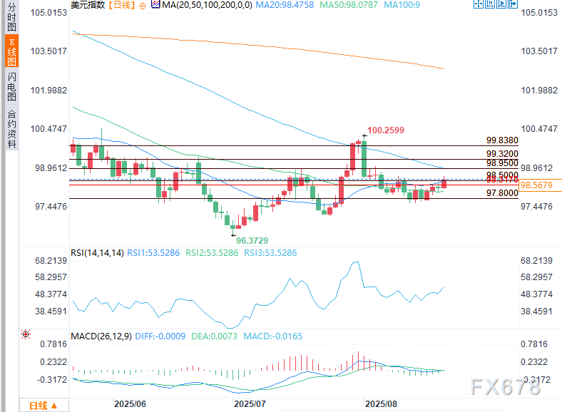 周四 8月21日 美元指数 DXY 延续涨势 盘中上涨0 46 至98 673 连续第二个交易日收于50日简单移动平均线 98 100 上方 这一走势印证了近期美元指数的技术面强势 且使该指数距离99 177 99 320的关键阻力区 ...