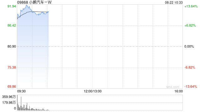 0小鹏汽车-W(09868)早盘高开,截至发稿,股价上涨12.42%,现报90.95港元,成交额24.88亿港元。小鹏汽车公告,8月20日-21日,公司联合创始人