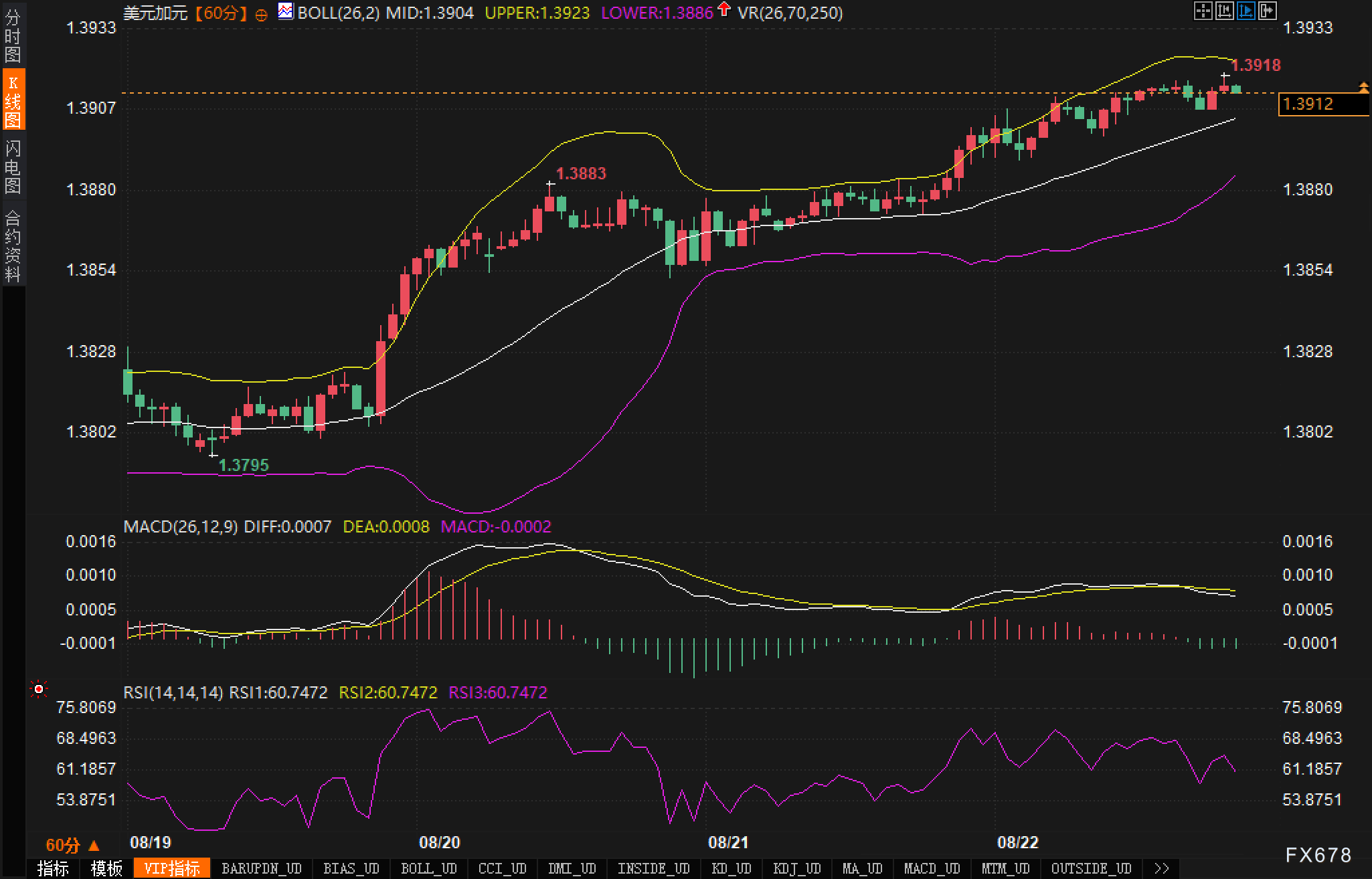 周五(8月22日),美元/加元汇价持续上涨,创下三个月来的新高,触及1.3918水平,展示出强劲的上行势头。美元涨势的背后,是市场风险情绪的增强,交易员对美联储主席鲍威尔将在杰克逊霍尔会议上讲话的预期产生谨慎情绪。 ![]() 与此同时,加元面临低油价的压力,并且加拿大与美国之间的贸易关系依然存在潜在风险,进而影响加元的走势。 基本面 美元分析: 美元的涨势受到了多重因素的推动。首先,美联储可能的降息预期仍未改变,市场的主要焦点集中在美联储如何应对经济放缓的同时,维持通胀目标。此外,鲍威尔的讲话预计将成为市场情绪的关键催化剂,交易员关注他对当前经济形势及货币政策的具体表态。 加元分析: 加元的弱势表现与油价疲软密切相关。近期油价承压加剧了加拿大经济的压力,尤其是在全球贸易不确定性加剧的背景下,加元的风险溢价增加。此外,虽然加拿大零售数据的改善有助于短期提振市场信心,但在全球经济不稳定的环境下,加元的上涨空间仍然有限。 技术面: 根据图表分析,美元/加元汇价目前处于上行趋势中。价格触及1.3918,为三个月来的新高,表现出强劲的上涨动力。 ![]() RSI: RSI指标目前处于60附近,接近超买区,虽然存在一定的回调风险,但总体市场情绪仍然偏多。 技术面表明,美元/加元汇价短期内可能会继续上行,若突破1.3920以上,则有可能挑战1.3950附近的下一阻力位。 市场情绪观察 当前的市场情绪呈现出明显的风险厌恶情绪,这使得美元继续受到青睐。交易员担心全球经济放缓,尤其是在地缘政治因素的影响下,市场的不确定性加大。 加元情绪: 尽管加拿大零售数据的回升给市场带来了一定的希望,但油价下行压力依然是加元走弱的主因,且加美之间的贸易风险仍可能加剧市场的不安情绪。 后市展望 多头展望: 从技术面来看,美元/加元在突破1.3918后,短期内有进一步上行的空间。市场情绪偏向风险厌恶,美元的强势可能会持续。 空头展望: 尽管美元目前占优,但加元也面临潜在的反弹空间,特别是在油价回升和市场情绪稳定的情况下。如果油价开始明显回升,加元的支撑作用可能会逐渐显现,导致美元/加元出现回调。