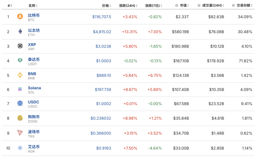 美联储主席鲍威尔在杰克逊霍尔发表“鸽派”讲话后,加密货币市场集体上攻。8月22日晚间,以太坊价格飙升,带领加密货币市场集体走高。 Coinglass数据显示,过去24小时加密货币市场共有超16万人被爆仓,爆仓总金额为6.94亿美元。 以太坊价格飙升 再创历史新高 8月23日凌晨,以太坊强势拉升至4888.48美元,突破2021年11月初创下的历史最高价4878美元,再创历史新高。 ![]() 其他加密货币同样走高,比特币、XRP、BNB等均涨超3%。 ![]() Coinglass数据显示,过去24小时加密货币市场共有超16万人被爆仓,爆仓总金额为6.94亿美元,其中多单爆仓2.3亿美元,空单爆仓4.7亿美元。 ![]() 鲍威尔:美联储对降息持开放态度 消息面上,8月22日,美联储主席鲍威尔在怀俄明州举行的杰克逊霍尔全球央行年度经济政策研讨会上表示,美联储可能需要调整政策立场。这一表态被市场解读为降息信号。 鲍威尔在讲话中表示,今年以来,在经济政策全面变革的背景下,美国经济展现出韧性。就美联储的双重使命目标而言,劳动力市场仍接近就业最大化,通货膨胀率虽仍略有上升,但已较疫情后高点大幅回落。与此同时,风险平衡似乎正在发生变化。 鲍威尔表示,通胀的上行风险已经减弱,而就业的下行风险正在上升。美联储的政策利率比一年前低了100个基点,失业率仍然很低,目前的情况允许美联储在考虑调整政策立场时谨慎行事。在基准前景和风险平衡不断变化的背景下,美联储可能需要调整政策立场。 鲍威尔称,如果劳动力市场的紧张或其他因素对物价稳定构成风险,美联储可能需要采取优先行动。美联储的货币政策必须具有前瞻性,并考虑其对经济影响的滞后性。 此外,据英国《金融时报》报道,匿名知情人士透露,在今年早些时候,美国通过与美元挂钩的加密资产相关的法规后,欧盟官员正在寻求加快推出与欧元挂钩的稳定币。该消息人士称,欧盟可能在以太坊或Solana区块链上推出数字欧元。 一位分析师此前表示,近几个月来,美国的监管发展尤其有利于以太坊生态系统,使得加密货币更具吸引力。 Bitwise首席执行官Hunter Horsley表示,银行将成为推动比特币和加密货币领域不断发展的重要催化剂。 (文章来源:中国基金报) |