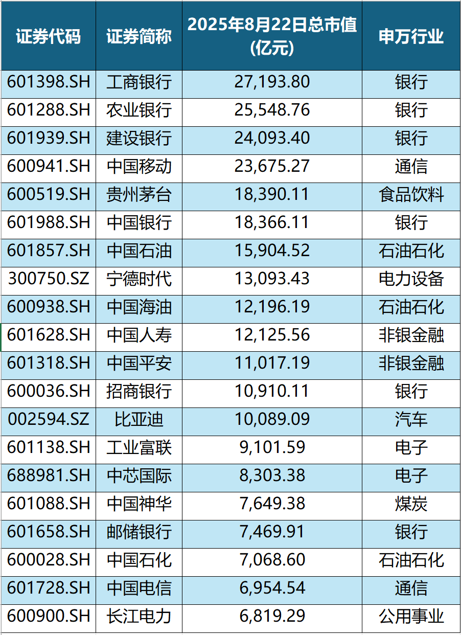 8月22日,在“寒王”等龙头带领下,A股电子行业市值再创新高,且总市值已经超过银行业,跃居行业首位。 某资深市场人士认为,A股电子行业市值超越银行业登顶,是我国经济结构调整成效落地的重要标志——不仅意味着A股已形成与美股相近的科技、金融、能源三大板块格局,更直观印证了我国经济正从传统驱动向创新驱动转型。 电子行业登顶 8月22日,从申万行业来看,A股电子行业表现亮眼:其A股市值达到11.38万亿元,在持续刷新历史纪录的同时,更一举超越此前占据首位的银行业,跃居各行业榜首,行业权重地位迎来标志性突破。 当日行情中,电子行业涨幅达4.82%,在所有申万行业分类中位居榜首。与此同时,同为科技赛道的通信、计算机行业亦表现强势,分别以3.77%和3.50%的涨幅紧随其后,共同推动A股科技板块呈现出显著的强势上涨态势。 个股层面,电子板块内部市值格局清晰。工业富联以9101.59亿元的A股市值稳居首位,持续领跑电子行业;寒武纪紧随其后,A股市值达5200.93亿元,位居板块第二;海光信息则以4324.66亿元的市值排在第三位。 涨停个股方面,海光信息、寒武纪-U、盛美上海、云天励飞-U等多只电子和计算机相关个股均实现“20cm”涨停。从业务属性来看,这些涨停公司多集中在芯片设计、半导体设备等细分领域,反映出市场资金对科技赛道高景气的高度认可。 ![]() 10年巨变 资本市场的变迁,向来是经济发展的缩影,代表着产业发展的方向。过去10年,A股上市公司市值版图已发生深刻重塑——新兴产业市值实现量级突破,传统行业权重则随着产业结构的转型而快速下降。 从申万行业市值分布看,十年间“新兴向上、传统承压”的趋势显著:电子“领跑”,通信“快跑”,科技类新兴行业市值实现巨大“飞跃”。 如电子行业,当前市值约为11.38万亿元,不仅超过长期占据头部的银行业跃居首位,更较2016年年末的2.15万亿元实现超4倍增长;行业排名也从2016年末的第9名,一路攀升至当前第1名。 通信行业,最新市值为3.25万亿元,行业排名跃升至第13名;而2016年末仅排在第22名,十年间排名提升9位,成长速度非常迅速。 与之形成鲜明对比的是,房地产、石油石化、基础化工等传统行业,十年间市值规模与行业排名均出现显著下滑。例如,房地产行业2016年末总市值为2.57万亿元,截至2025年8月22日已缩水至1.17万亿元,市值“腰斩”;行业排名也从2016年年末的第7名,下滑到当前第16名,退出行业市值中上游阵营。 十年间,A股“千亿市值俱乐部”成员结构也完成了从“传统主导”到“新兴崛起”的转变。 据Wind数据显示,截至2025年8月22日,总市值超过千亿元的上市公司共有165家,其中,高端装备制造业、新一代信息技术产业、生物产业等战略性新兴产业公司数量超70家,占比超四成,成为“千亿军团”的核心组成部分。 头部市值阵营中,中国移动、比亚迪、宁德时代市值均突破万亿元;工业富联、中芯国际也以超过8000亿元市值排名第14、15名;美的集团、寒武纪亦成功进入前30名,新兴产业龙头的市值话语权显著提升。 ![]() 2025年8月22日A股上市公司总市值TOP20 反观2016年年末,彼时A股千亿元市值公司仅有67家,且以银行、保险、石油等传统行业为主,而高端制造业公司不足10家。市值前20名榜单中,银行、保险、石油等传统企业“霸榜”,仅有上汽集团是唯一跻身前20榜单的汽车企业。 ![]() 2016年年末A股上市公司总市值TOP20 对于A股行业市值格局的十年巨变,业内人士分析核心因素有两方面:一方面,近些年我国加快战略性新兴产业发展,推动产业结构从传统劳动密集型、资源依赖型向高端制造业转型,这是未来经济发展的重要方向。另一方面,资本市场加大对战兴产业和未来产业的投融资力度,助力企业快速成长。 (文章来源:上海证券报) |