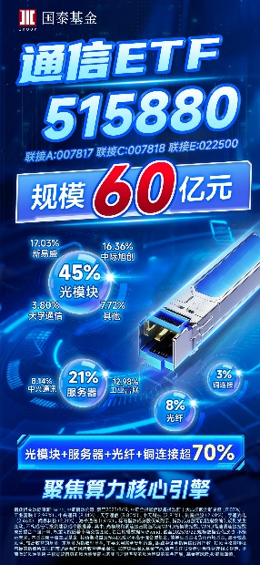 每经编辑|彭水萍 今日,人工智能产业链持续爆发, 光模块龙头新高不断。光模块含量45%的通信ETF(515880)一度大涨超5%。 最近,“光模块”带动下的通信ETF无疑是全市场最靓的崽,自4月9日低点以来涨幅已经超过100%。人工智能算力持续催化下,光模块、服务器、光纤、铜连接等相关领域持续表现亮眼。虽然市场上现在还没有直接的光模块ETF,但是聪明的资金已经纷纷用脚投票,涌向光模块含量45%的通信ETF(515880)。买不到“光模块”这个纯元,那就珍惜“通信ETF”这个甄嬛。截至8月22日,通信ETF规模达到60亿元,过去20个交易日净流入资金超24亿元。 来源:Wind,过往表现不代表未来 光模块+服务器+铜连接+光纤超过70% Wind数据显示,截至8月19日,通信ETF(515880)标的指数中“光模块+服务器+铜连接+光纤”占比超过70%,良好地代表了算力硬件的基本面。 在北美算力的产业链条上,由于全球产业链分工差异,A股首要关注板块包括PCB、光模块、服务器ODM三大核心环节。由于市场需求持续旺盛,景气开始向产业链上下游扩散。PCB方向上,产业链厂商扩产意愿增强,PCB设备如激光钻孔等环节有望迎来批量订单。同时,AI激励叠加宏观经济转暖,PCB上游覆铜板厂商集体涨价,下一代M9产品中的电子布预期也在不断提升。光模块方向上,除了1.6T等高端产品出货预期加强之外,上游光芯片等器件厂商也备受关注。此外,微软在二季度业绩会上提到所有IDC都要上液冷,其他厂商有望跟进,国内液冷厂商也迎来了新的出海机遇。 从基本面方向看,需求端北美资本开支超出预期,四大云厂商(Meta、谷歌、亚马逊、微软)资本开支指引乐观。软件端GPT-5、Genie3等大模型落地节奏加速,产业端进展良好。硬件侧北美算力产业链条业绩高增,全球AI交相辉映。此外,流动性持续宽松背景下,AI也是这轮牛市中科技板块的核心方向。综合而言,AI可能是自云计算以来最大的机会,通信ETF(515880)值得关注。 为什么要重点关注光模块? 目前大模型参数量已经达到了万亿参数规模,每次完成训练和推理都需要面临庞大的运算量,所以,厂商无法依靠单一的GPU或者AI服务器完成这么庞大的运算。解决方法是组网。 以英伟达的架构为例,网络的目标是将大的计算任务分割,然后分发到每一片GPU上运算,最后再交互结果。所以,组网的第一步,是将GPU组成一个AI服务器。这个过程是使用NVLink技术来完成的,在Blackwell架构中,介质就是铜缆。 铜缆传输速度快、功耗小,优点显著。但没有什么东西是完美的,铜缆也有其固有的缺点。比如,在面对数据中心的高频高速信号时,铜缆无法完成长距离传输的任务。由于“趋肤效应”,信号会集中在导体的表面,传输的有效横截面变小,发热等问题被放大,数据丢包等问题开始变得不可忍受。 工程师说,要有光,于是就有了光模块。光模块的任务是将电信号转变为光信号,使得其能长距离传输。这样,AI服务器便可以进一步组装成为大规模集群,完成复杂的运算。换言之,光模块是数据中心组网过程中不可或缺的。由于全球产业链分工的关系,光模块的核心份额聚焦在中国大陆,北美相关厂商的需求,也主要是由中国大陆的企业来完成。所以,光模块无疑是A股的AI行情中的核心环节之一。这一点,我们也从龙头公司高速增长的业绩中看到了,并且,我们认为业绩仍有较大的增长空间。 光模块ETF哪里找? 通信ETF(515880)标的指数的光模块占比45%,加上服务器、铜连接、光纤等占比超过70%,几大核心环节占比应该是目前主流人工智能指数和通信指数中最高的。 目前全球的科技巨头都在AI战场上角逐,且北美目前已经跑通了这条道路,AI或许真的能改变我们的生活。同时,A股的光模块又是在全球产业链分工中占据了核心地位的环节,在A股慢牛的过程中,其表现代表了市场对AI这一产业趋势的认可程度。建议投资需围绕关键环节展开,继续关注通信ETF(515880)。 注:指数/基金过往表现不代表未来。提及基金属于股票型基金,其预期收益及预期风险水平高于混合型基金、债券型基金和货币市场基金,属于较高风险、较高收益的基金。提及基金为指数型基金,主要采用完全复制策略,跟踪相关标的指数,其风险收益特征与标的指数所表征的市场组合的风险收益特征相似。如需购买相关基金产品,请您关注投资者适当性管理相关规定、提前做好风险测评,并根据您自身的风险承受能力购买与之相匹配的风险等级的基金产品。基金有风险,投资需谨慎。 |