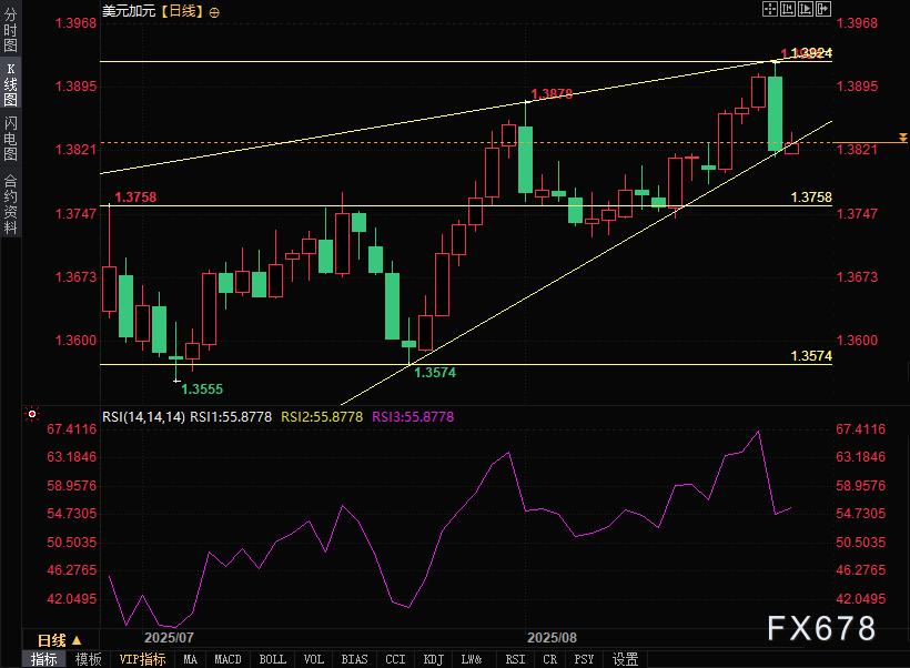 美元兑加元(USD/CAD)在上周五(8月22日)下跌近0.8%至1.3820附近后,本周一亚洲时段难以站稳脚跟,目前交投于1.3830附近。美元兑加元近期走势受到美联储与加拿大央行政策预期、经济数据及原油价格等多重因素影响。美元指数(DXY)小幅走高,尽管如此,美元指数仍接近98.00下方近四周低点。 ![]() 美联储主席鲍威尔上周五在杰克逊霍尔研讨会上的讲话中表示,他以下行就业风险为由,对放松货币政策限制持开放态度,美元兑加元仍然面临压力。市场对美联储9月降息的预期显著升温,这导致美元承压,此为美元兑加元走弱的主要因素之一。 鲍威尔表示:“尽管如此,由于政策处于限制性区域,基线前景和风险平衡的转变可能需要调整我们的政策立场。”他承认就业下行风险上升,而通胀风险仍然向上倾斜。 根据CME FedWatch工具的数据,市场认为美联储在9月货币政策会议上降息的可能性为87%。 本周投资者将重点关注美国7月耐用品订单和个人消费支出价格指数(PCE)数据。 加拿大7月份零售销售数据表现强劲,环比增长1.5%,符合市场预期;剔除汽车后的零售销售环比增长1.9%,远超预期的1.1%,良好的经济数据为加元提供支撑。 加拿大是主要产油国,加元汇率与原油价格通常呈正相关关系,需关注国际油价(如WTI原油期货)的变动对加元的影响。 技术分析视角 从技术面来看,美元兑加元可能处于“楔形”模式的形成过程中。相对强弱指数(RSI)低于60,该动能指标也显示卖方压力较大。 上行方面,初步阻力位可关注1.3878附近,若能突破可能缓解短期下行压力; 下行方面,重要支撑则关注1.3758水平,若有效跌破该支撑,可能会确认下行趋势的延续,进一步目标看向1.3375下方。 ![]() 后市预测 市场将密切关注美联储9月议息会议的最终决定以及会后的政策声明,任何与市场预期不符的信号都可能引起汇率的剧烈波动。 未来需重点关注美国的PCE通胀数据以及非农就业报告,这些数据将直接影响美联储的政策预期。加拿大的就业、通胀和GDP数据也同样重要。 若美国经济数据持续超预期强劲,或通胀黏性再度凸显,可能导致市场重新评估美联储的降息幅度和节奏,美元有望重新走强。反之,若加拿大经济数据表现疲软或国际油价大幅下跌,则可能限制加元的涨幅。 北京时间12:21,美元兑加元交投于1.3832/33。 ![]() |