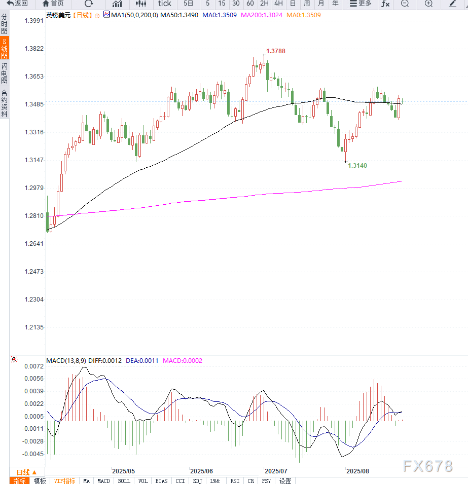 英镑兑美元在周一亚洲交易时段承压下滑。该货币对在1.3495附近遇到卖压,美元在短期内恢复部分需求。 ![]() 市场目前预计,下一次25个基点降息要到2026年3月才可能实现。 在缺乏英国高等级数据的情况下,汇价短期波动主要取决于美元表现。本周市场还将关注美国新屋销售和芝加哥联储全国活动指数,以捕捉美元方向。 从日线图来看,英镑兑美元在1.3520附近遇阻后回落。短期支撑位在1.3460,若跌破可能进一步走低至1.3400关口。上方阻力位在1.3550—1.3580区间,若突破该区域,将重新打开上涨空间,目标指向1.3650。 整体技术形态显示该货币对处于震荡整理格局,短线偏弱运行。 ![]() 目前英镑兑美元走势受到美联储与英国央行政策分化的影响。美联储释放降息信号,中长期利好英镑,但美元短期因避险与数据驱动表现坚挺。 与此同时,英国通胀超预期强化了市场对英国央行暂缓宽松的预期,为英镑提供一定支撑。整体来看,汇价在1.34—1.36区间震荡概率较大,方向仍需等待美国核心数据与美联储9月会议的确认。 ![]() |