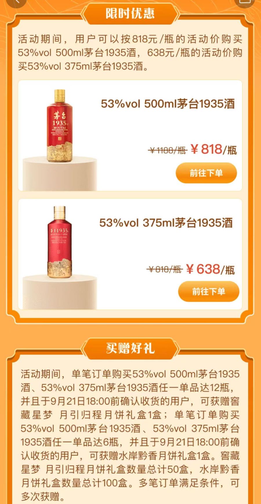 8月25日,投资快报记者注意到,茅台酱香酒在淘宝、京东的旗舰店推出茅台1935酒(高端)的预售,53度500ml价格为998元/瓶;其中,京东茅台酱香酒旗舰店显示已售48件。据业内人士消息,该产品预售期三天,将于8月28日正式上市。 ![]() 公开资料显示,茅台1935在2022年1月正式上市,在截至2024年底的近三年时间里创造了280亿的销售神话;不过,茅台1935价格自2023年以来一度走低。当前,茅台1935在电商平台售价已跌破600元/瓶;其中,京东有店铺的售价已低见至519元/瓶,与1188元/瓶的零售指导价相比,已跌去56.31%;较历史高位1800元/瓶,更是暴降超过71%。 对于茅台1935价格的持续走低,有业内人士对投资快报记者表示,主要原因是供需错配以及市场情绪。“产品的投放量较大远超市场需求,叠加目前社会需求不振的市场预期,导致了茅台1935价格不断走低。”也有业内人士表示,飞天茅台“破防”后跌幅不断加大,高端白酒价格进一步受压,也拖累了茅台1935。 ![]() 投资快报记者关注到,8月25日,酒类行情监测公众号“今日酒价”数据显示,25年飞天茅台(53度/500ml,下同)原箱和散瓶分别报1845元/瓶和1820元/瓶,较刚上线时的2255/瓶和2220元/瓶已分别跌去了18.18%和18.02%;24年原箱和散瓶分别报1870元/瓶和1840元/瓶,分别较年初的2315/瓶和2220元/瓶跌去了19.22%和17.12%。 值得一提的是,茅台1935在i茅台正进行降价活动促销,原价1188元/瓶的53度500ml的茅台1935促销价仅818元/瓶,相当于打了69折;原价818元/瓶的53度375ml的茅台1935促销价仅638元/瓶,相当于打了78折。此外,活动期间,用户在活动页面购买上述两款产品中的任一单品,单笔订单达12瓶,有机会获得“窖藏星梦月引归程”月饼礼盒1盒;单笔订单达6瓶,有机会获得“水岸黔香”月饼礼盒1盒。 ![]() 投资快报记者关注到,今年以来,贵州茅台已发行了蛇年生肖酒(简称“蛇茅”)、笙乐飞天等新品。不过,“蛇茅”和笙乐飞天都经历了从暴炒到不断回落的“尴尬”。数据显示,“蛇茅”一度被炒高至3800元/瓶,但最新批发参考价仅1945元/瓶,较高位跌去了48.82%;笙乐飞天被曾被炒至3400元/瓶甚至更高,但最新批发参考价2000元/瓶,较高位跌幅超过41%。 贵州茅台日前发布的半年报显示,2025年上半年公司实现营业收入910.9亿元,同比增长9.16%;实现归母净利润454亿元,同比增长8.89%。此前,贵州茅台披露的一季度显示,公司今年1-3月实现营业收入514.4亿元,同比增长10.67%;实现归母净利润268.5亿元,同比增长11.56%。 (文章来源:投资快报) |