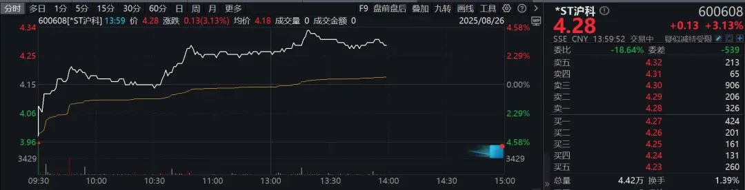 一家A股公司,一个季度的收入竟不足15万元。不过,这只股票今日走高,午后一度涨逾4%。 *ST沪科(600608)8月25日晚披露2025年半年报,报告期内,公司实现营业收入440.02万元,同比下降65%;净利润3.49万元,同 ...