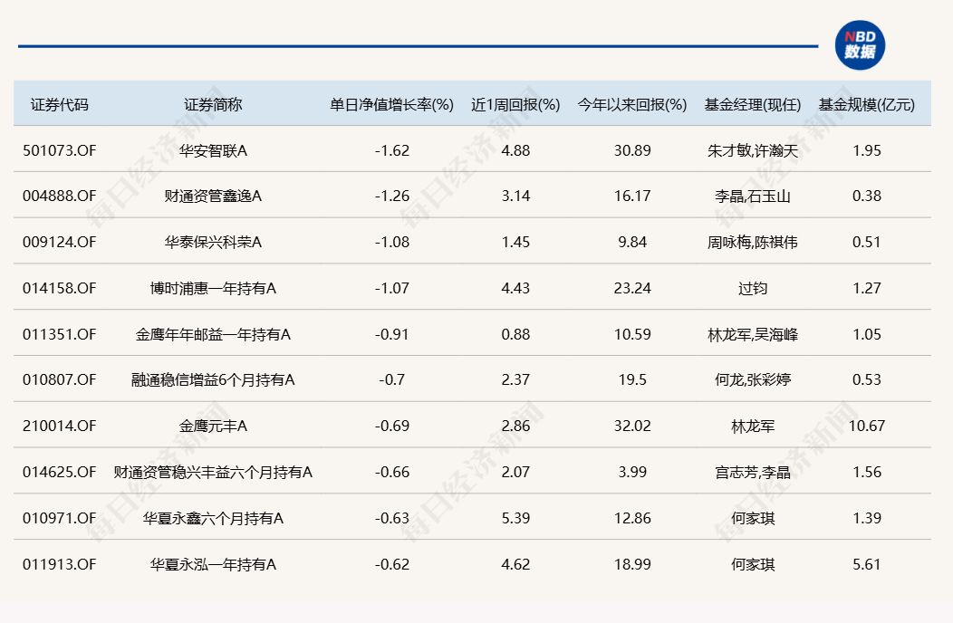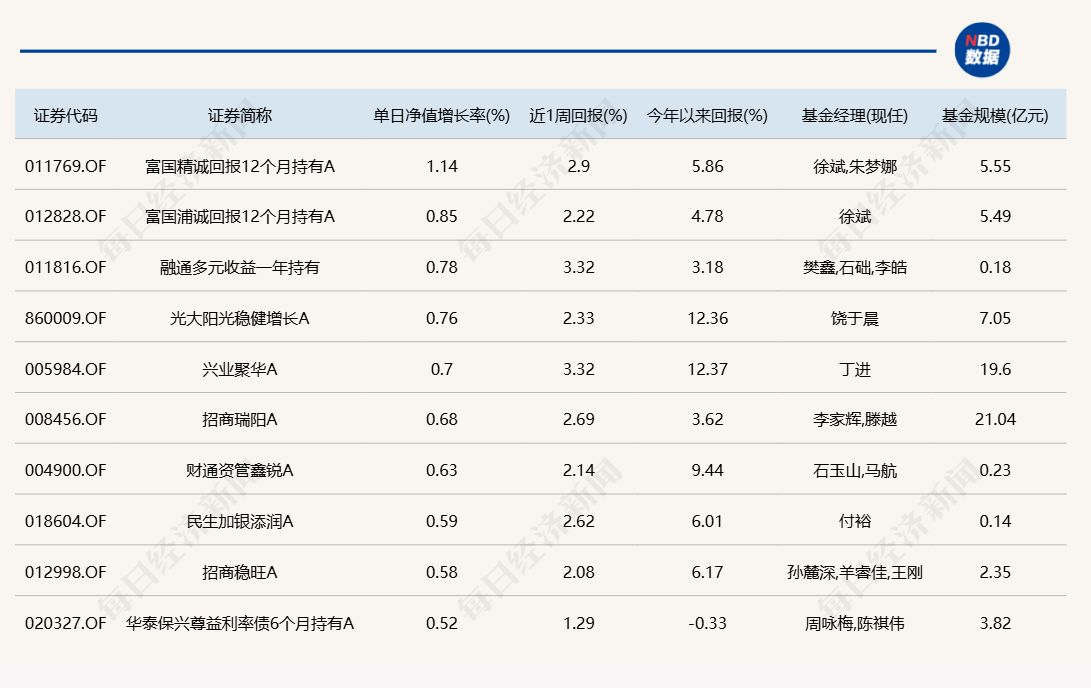 每经记者|肖芮冬 每经编辑|赵云 8月26日电,市场全天震荡调整,三大指数涨跌不一。板块方面,猪肉、游戏、消费电子、美容护理等板块涨幅居前,CRO、稀土永磁、PEEK材料、军工等板块跌幅居前。个股涨多跌少,全市场超2800只个股上涨。沪深两市全天成交额2.68万亿元,较上个交易日缩量4621亿。 下面一起来看今天公募基金的表现。 (注:榜单1、榜单2仅选取灵活配置型、偏股混合型和普通股票型三类产品作为主动基金的代表,纳入统计;债基相关榜单包括各类主、被动债券型基金) 1.单日涨幅榜 2.单日跌幅榜 3.单日债基涨跌幅榜 4.晚间值得关注的消息 【寒武纪:上半年净利润10.38亿元 同比扭亏】 寒武纪(688256.SH)发布半年报,2025年上半年实现营业收入28.81亿元,同比增长4347.82%;实现净利润10.38亿元,同比扭亏。本期公司持续拓展市场,积极助力人工智能应用落地,报告期内收入较上年同期大幅增长。 注:寒武纪Q1净利3.55亿元,据此计算,Q2净利6.83亿元,环比增长92.03%。最新十大流通股东名单显示,知名游资章建平位列第7,持股608.63万股,占公司总股本1.45%,与上季度持平。 【中际旭创:上半年净利润同比增长69.4% 拟10派4元】 中际旭创(300308.SZ)公告称,上半年营业收入147.89亿元,同比增长36.95%;归属于上市公司股东的净利润为39.95亿元,同比增长69.40%。公司拟以11.11亿股为基数,向全体股东每10股派发现金红利4元(含税)。 |