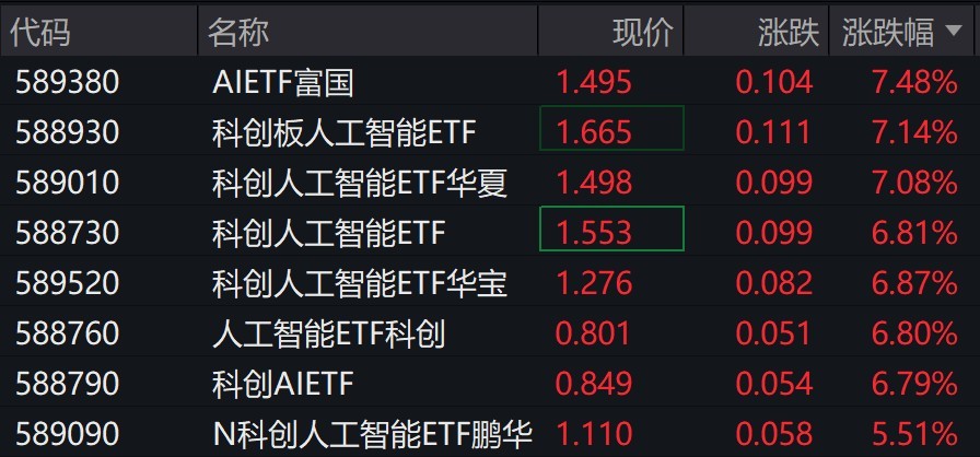 每经记者|叶峰 每经编辑|肖芮冬 科创板人工智能概念股走高,晶晨股份涨超12%,复旦微电涨超11%,恒玄科技涨超10%。 受盘面影响,多只科创板人工智能相关ETF涨超7%。 消息面上,昨日,国务院印发《关于深入实施“人工智能+”行动的意见》(以下简称《意见》),提出到2030年,我国人工智能全面赋能高质量发展,新一代智能终端、智能体等应用普及率超90%,智能经济成为我国经济发展的重要增长极,推动技术普惠和成果共享。此次《意见》围绕科学技术、产业发展、消费提质、民生福祉、治理能力、全球合作等六个方面组织实施“人工智能+”重点行动,为相关工作绘制了清晰的路线图。 有券商表示,随着下游实际应用不断落地,人工智能有望从概念、主题投资进入景气投资阶段。这一趋势的背后,是AI行业已从早期的概念验证阶段成功迈入规模化应用阶段,市场的关注点也随之从“技术能否实现”转变为“企业能否盈利”,投资决策更加强调技术商业化的进度、企业的盈利能力以及整个行业的景气度,人工智能赛道中盈利预期确定向上的标的具备良好投资价值。 |