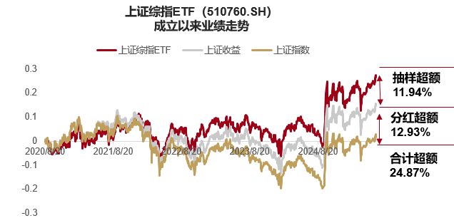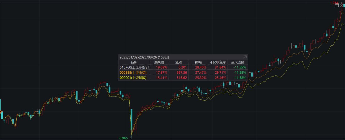 每经编辑|叶峰 近期上证综指屡创十年新高,截至8月26日,上证综指今年以来涨幅已超15%!许多朋友都在担心自己的收益是不是跑不过大盘,“打不过就加入”,用上证综指ETF(510760)一键跟上大盘升浪! 上证综指ETF(510760)采用抽样复制,在控制跟踪误差的前提下增厚收益,截至8月26日,今年以来上证综指ETF二级市场涨跌幅达19%,超额逾3.5个百分点!对年初持有的投资者而言,上证综指ETF(510760)带你提前站上了3990点! 近期随着市场持续上涨,上证综指ETF(510760)迎来资金抢筹布局,连续5日净流入超2.6亿元。 集中覆盖中国优质资产,表征A股 上证综指历史悠久、覆盖度广、市场认可度高,编制规则优化后指数的稳定性和代表性进一步提升,是当之无愧的“A股晴雨表”。 上证综指集中覆盖中国优质资产,是做多中国资产的重要渠道。在新“国九条”的背景下,“中特估”占比高的上证综指适应市场能力可能更强。上证综指对A股资产具备良好的代表性,可以视作广泛投资中国资产的重要渠道。 从业绩代表性上看,当下A股市场权益市场的配置性价比依然较高。截至8月26日,近三年上证综指相对沪深300指数出现明显的超额收益,超额收益超10个百分点。 抽样复制带来指数增强,长期超额收益达24.9% 长期来看,基金经理吴中昊于2022年12月30日起开始管理该产品,排除首个季度后,上证综指ETF较上证指数实现了每年都有超额。截至2025年6月末,基金成立以来累计较上证指数实现超额收益24.87个百分点,即便是和计入分红收益的上证收益指数(000888.SH)相比,依然还有11.94%的超额。 数据来源:Wind,数据截至2025/6/30。我国基金运作时间较短,不能反映股市发展的所有阶段。指数/基金过往表现仅供参考,不预示未来表现。 低至0.15%/年,全市场费率最低投资利器 值得注意的是,上证综指ETF目前也是全市场费率最低的大盘投资利器之一,管理费率低至0.15%/年,托管费率低至0.05%/年。感兴趣的投资者可以布局上证综指ETF(510760),把握A股市场中长期的修复行情。 注:上证综指ETF涨幅为二级市场涨幅。数据来源WIND,数据区间2025/1/1-2025/8/26。“带你提前站上了3990点”指2025/1/1-2025/8/26期间,上证综指ETF二级涨跌幅为19.09%,上证综指涨跌幅为15.41%,考虑到2025/8/26上证指数收盘价为3868.38点,经折算即为3990点。 风险提示:数据来源wind,数据截至2025/8/26。上证综指ETF成立于2020/8/21,2020年-2025上半年业绩/业绩比较基准收益分别为0.27%/3.25%、10.57%/4.80%、-7.27%/-15.13%、-0.28%/-3.70%、17.69%/12.67%、5.48%/2.76%。数据来源:基金定期报告。我国基金运作时间较短,不能反映股市发展的所有阶段。指数/基金过往表现仅供参考,不预示未来表现。本基金属于股票型基金,其预期收益及预期风险水平理论上高于混合型基金、债券型基金和货币市场基金。本基金为指数型基金,跟踪上证综合指数,其风险收益特征与标的指数所表征的市场组合的风险收益特征相似。投资者在进行投资决策前,应仔细阅读基金的《招募说明书》和《基金合同》,关注投资者适当性管理相关规定,提前做好风险测评,并根据您自身的风险承受能力购买与之相匹配的风险等级的基金产品。基金有风险,投资需谨慎。 |