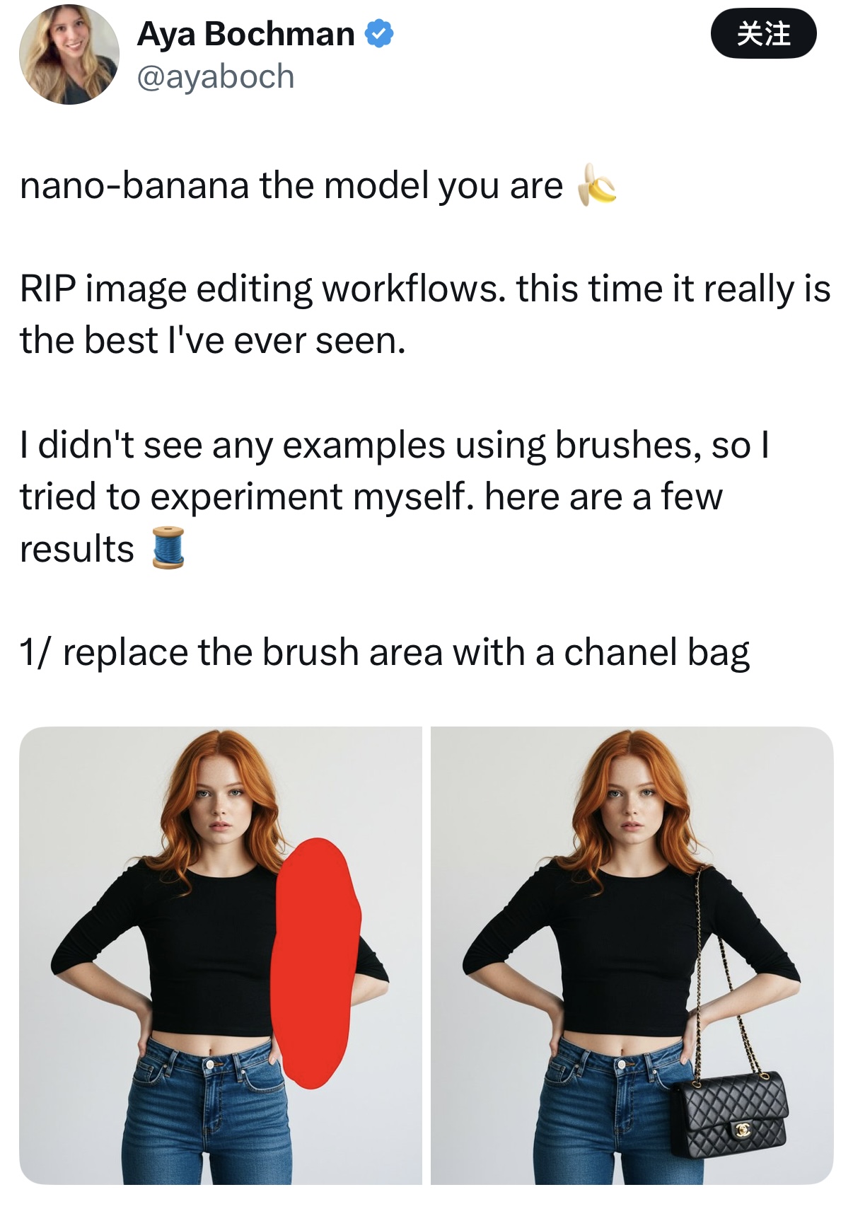 在视频生成模型称霸多个榜单之后,谷歌终于将战火引至图像领域。当地时间8月26日,谷歌发布了其最新的图像生成和编辑模型Gemini 2.5 Flash Image,并迅速登顶多个主流图像排行榜,成为新晋性能冠军。 ![]() 第一财经记者实测后发现,确实如众多网友所体验的那样,模型各方面表现堪称优秀,无论是角色的一致性、提示词的跟随、物理逻辑的真实性还是画面审美方面都保持了水准。但对中国用户的一大限制在于不支持中文输入。即使用户使用英文提示,若生成内容涉及中文,效果仍会显著下降。测试中还发现,模型偶尔会出现多肢体等结构错误。 尽管如此,Gemini 2.5 Flash Image 仍被广泛认为是当前市场上最强的图像编辑和生成模型之一。谷歌官方演示显示,该模型已具备替代部分人工修图的能力,可帮助设计师一键完成图像修改与创意生成,也适用于电商产品图的制作。更值得注意的是,其单张图像生成成本不到3毛钱,极具性价比,有望大幅推进AI图像生成的商业化进程。 登顶双榜单 实际上,在正式发布之前,市场已经有一些风声。上周一款名为“nano-banana”的模型出现在大模型竞技场中,开始接受用户的匿名体验和打分,目前投票数超过250万。如今谜底揭晓,“nano-banana”正是Gemini 2.5 Flash Image。 在大模型竞技场LMArena的文生图与图像编辑两个场景,谷歌的图像模型均拿下全球第一,在图像编辑榜单上模型表现尤为出色,获得1362的高分,以171分的差距领先第二名flux-1-knotext-max。 ![]() 知名AI基准测试机构Artificial Analysis同样获得了早期访问权限,并在过去一周以“rex”的化名在竞技场中进行了测试。目前谷歌的模型在图像编辑方面排名第一,超过了OpenAI的GPT-4o和国内阿里的Qwen-Image-Edit,在文生图方面则略逊于字节Seedream 3.0和GPT-4o,排名第三。 Artificial Analysis还做了一个对比测试,给出了一张图,让谷歌、阿里通义和OpenAI三家的模型生成新的照片:在自行车后座上加一名乘客,并将地点更改为内蒙古的草原。 ![]() 从输出结果看,千问的图像模型未能准确进行指令跟随,在画面真实度上,谷歌的模型表现则比GPT-4o更为突出。 谷歌称,Gemini 2.5 Flash Image的核心亮点是图像编辑能力,这一模型可将多个图像混合到一幅图像中,保持高度的角色一致性,还能使用自然语言进行有针对性修改,并充分利用Gemini的世界知识来生成和编辑图像。 一直以来,图像生成中的一个根本挑战是如何在多个提示和编辑中保持角色或物体的外观。“我们知道,当你编辑自己或熟悉的人时,哪怕是细微的差别都会显得刺眼 。”谷歌官方表示,“差一点但不完全一样”的效果就是感觉不对,模型的最新更新专门针对这一点,让朋友、家人,甚至宠物始终看起来像他们自己。 谷歌CEO桑达尔·皮查伊(Sundar Pichai)和谷歌DeepMind CEO戴密斯·哈萨比斯(DemisHassabis)在发布时亲自下场带货。 皮查伊借助最新模型生成了家里爱犬冲浪、做大厨的照片,画面质感相当不错。哈萨比斯则给自己生成了一个肖像照,将照片背景做了修改,切换为古典风格,但是人物的容貌没有出现改变。 ![]() 从画面来看,谷歌这一模型可做到在不同的姿势、光线和环境中保持人物或角色的相似性,甚至可以将相同的角色应用到新的风格和表面上。 现在用户使用Gemini App可以免费体验,但面向开发者的版本,算下来每张生图成本也不到3毛钱。Gemini 2.5 Flash Image的定价为30美元/100万个输出token,每张图像为1290个输出token,每张图像价格约为0.039美元(约合人民币0.28元),这远低于OpenAI的0.19美元/张的价格。 实测表现:中文是短板,一致性出众 根据官方的发文,Gemini 2.5 Flash Image除了角色一致性方面,在渲染文本方面也表现出色。模型可以准确生成包含清晰易读且位置合理的文本的图片,非常适合用于徽标、图表和海报。 在商业化场景中,例如广告制作方面,主体特点、主角容貌不变,文字不变形这些都非常重要。在这一基础上,谷歌认为,他们的模型已经能适应产品模型和商业摄影,为电子商务、广告或品牌宣传制作清晰专业的商品照片。 具体模型在这些方面的表现如何?第一财经基于哈萨比斯的肖像照进行了测试。加上一张家里猫咪的照片,让Gemini融合生成哈萨比斯抱着猫坐在沙发上的图像,并且更换家居服。 ![]() 从第一次输出结果来看基本上找不出瑕疵,AI此前容易犯的错包括手指变形、虚化的背景形态错误、人物容貌细微变化等等都没有发生,甚至连哈萨比斯左手的手表细节都保持了一致。唯一不够满意的是,画面虽然是高清图,但分辨率并不高。 接下来,第一财经记者加大难度,让猫坐在沙发上,而哈萨比斯手里拿一本汉语大词典正在翻阅,沙发换成深绿色。 ![]() 可以看到,第二次生成时,模型在涉及中文场景的画面时开始出现错误,哈萨比斯拿着的并不是汉语大词典,甚至很难对应上正确的中文字体,但颜色和形状上保持了合理性。 第一财经记者进一步更改提示词,让模型发挥想象力,将猫换成主角,坐在沙发翻阅牛津词典,并让哈萨比斯在旁边给猫按摩。 ![]() 在这一步,模型开始出现明显的错误,指令并没有完全跟随,甚至猫多出了一条腿。不过,确实如官方所说,在英文场景下,文字的渲染没有出现差错,哈萨比斯手中牛津词典的书名拼写完全正确。 综上,该模型在面貌一致性、文本准确性方面表现优异,尤其擅长英文环境;而在中文理解与复杂构图指令方面仍存在明显