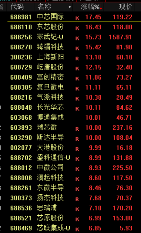 市场太强了,今天日内完成调整,上演深“V”走势,没想到昨天尾盘的跳水,以及今天盘中的跳水,都是为了倒车接人,相信你们都上车了吧! 一起看看今天发生了什么事情。 8月28日,A股三大指数集体大涨,盘中虽然大幅跳水,但有惊无险,下午一点半左右,上演大逆转,持续拉升!截至收盘,沪指涨1.14%,深成指涨2.25%,创业板指涨3.82%。 全市场共2868只个股上涨,66只个股涨停,2402只个股下跌。 ![]() 科创50指数暴涨超7%!今天的市场,上演“喜芯厌酒”行情,资金集中在芯片、算力硬件等方向。 寒武纪股价超越贵州茅台,登顶A股新股王。股价逼近1600元,涨超15%,总市值突破6600亿元。股民戏称:“英伟达是谁啊?一点都不熟,我只认识寒武纪。” 还有网友造出了一个新梗——“不寒而栗”,意思是形容因不持有寒武纪而惶恐不安的样子! ![]() 中芯国际暴涨超17%,总市值逼近1万亿元,创历史新高。 芯片股集体爆发。 ![]() 根据TrendForce预测,2025年中国AI服务器市场中,英伟达、AMD等外采芯片比例将从2024年的63%降至42%,本土芯片供应商占比则有望提升至40%,国产替代已成大势。此前8月21日,DeepSeek发布DeepSeek-V3.1大模型,使用了UE8M0 FP8 Scale的参数精度,为下一代国产芯片设计。 天风证券认为,半导体、国产算力及自主可控等领域仍将是未来的长期趋势。在中美围绕AI算力芯片的贸易政策持续存在不确定性的背景下,预计国内大模型开发企业与互联网平台将逐步提高国产芯片的采购与使用规模,国产芯片供应商及其配套产业链企业有望迎来发展机遇。 医药医疗、酿酒等板块下跌。 ![]() ![]() 好了,今天就分析到这里,希望大家每天都活在上涨的“恐惧”中! (文章来源:中国基金报) |