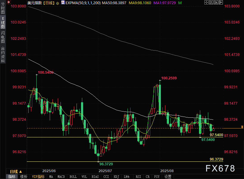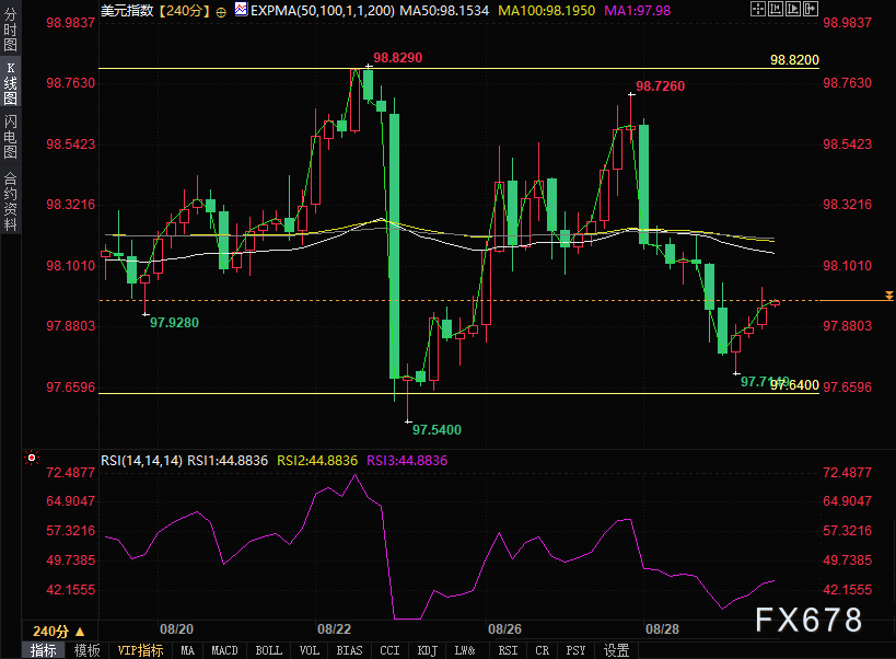 周五(8月29日)美元指数交投于97.96附近,在连续三日下跌后企稳回升,呈震荡上涨趋势,因为乐观的美国经济数据(美国国内生产总值年化季率修正值)带来的市场乐观情绪为美元提供了一定支撑,以及对劳动力市场的支持政策。该指数衡量美元对六种主要货币的价值。 ![]() 市场焦点正转向即将公布的关键经济数据,美联储首选的通胀指标——7月核心个人消费支出(PCE)物价指数。预计7月整体PCE同比上涨2.6%,核心PCE预计同期上涨2.9%。若数据表现强劲,可能会削弱市场对降息的预期;若数据疲软,则可能进一步强化降息押注。 美元反弹得益于美国第二季度经济增长向好——美国国内生产总值年化季率增长3.3%,较初值3.1%及前值3.0%有所加速。 美联储理事沃勒周四表示,他支持在9月会议上下调利率,并在未来三至六个月内进一步降息,以防止劳动力市场崩溃。 根据芝商所(CME)的美联储观察工具,9月美联储降息25个基点的概率为87%,较前一日略有上升。 美国副总统万斯近日言论引发对美联储独立性的担忧加剧。万斯在周四《今日美国》采访中确认美联储自主权终结,并表示:“不应允许官僚们在未经民选官员参与的情况下独自决定货币政策和利率……美国总统更有能力做出这些决策。” 俄乌冲突等地缘政治问题可能推升美元避险需求。 4小时图技术分析 美元指数4小时图上,50日指数移动平均线(EMA)(98.15)与100日指数移动平均线(98.19)正趋于发散,表明短期趋势呈波动倾向。相对强弱指数(RSI)线向中线靠拢,显示动能正在改善。 上行方面,若美元指数突破98.82的阻力位,下一目标区间可能为99.32-99.71;下行方面,97.64的支撑位则至关重要。 ![]() 日线技术分析 若美元指数有效突破9日指数移动平均线(98.10),有望上探50日指数移动平均线(98.39);若跌破近日低点97.54,可能持续下探七月低点96.37。 ![]() 北京时间14:10,美元指数报97.96。 ![]() |