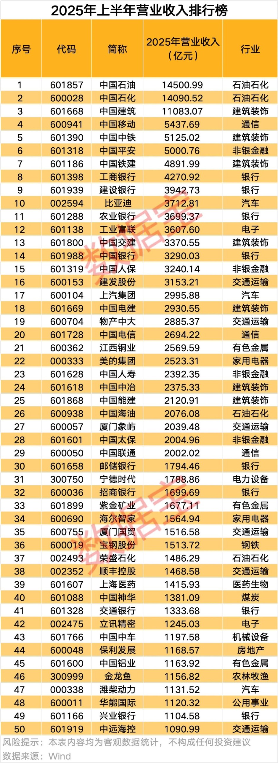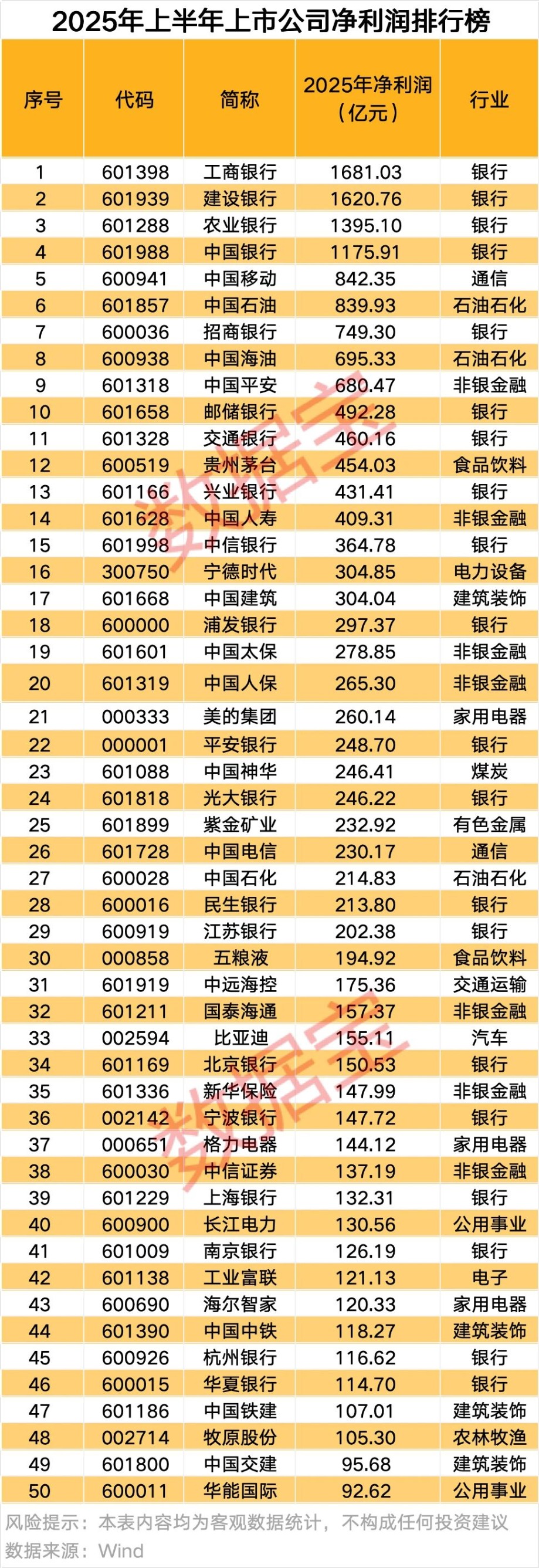 2025年上半年上市公司业绩亮点颇多。 据证券时报·数据宝统计,截至8月29日,已有5424家上市公司披露2025年度半年报(不含退市、无法在预约日期及预计无法在法定期限内披露定期报告的上市公司),合计实现营业收入34.99万亿元,同比增长0.17%,实现归母净利润2.99万亿元,同比增长2.57%,营收、净利润均有小幅度的增长。 按单家公司来看,其中3121家营业收入同比实现增长,占总数的57.54%;2908家上市公司归母净利润实现同比增长、减亏或扭亏,占总数的53.61%,上市公司整体业绩稳中有升。 农林牧渔和钢铁行业净利润翻倍 分行业来看,共有19个行业营业收入实现同比增长。其中,电子、国防军工和计算机3个行业表现亮眼,营收同比增速分别达到19.14%、12.65%和11.77%,行业景气度明显向上。 ![]() 受益于半导体复苏浪潮,电子行业上半年展现出强劲的增长势头,实现营业收入1.86万亿元,在31个申万行业中排名由第9名上升至第6名,成功超越有色金属、非银金融、电力设备3个行业,较去年同期增加近3000亿元。 在国产算力链快速发展和全国一体化算力网建设加速的推动下,芯片及相关硬件需求持续攀升。此外,受益于端侧AI需求爆发,AI手机推动高端换机潮,上半年消费电子细分领域实现回暖,营业收入同比增加超1700亿元,为电子行业贡献重要增量。 农林牧渔、钢铁行业上半年归母净利润实现翻倍,同比增幅分别为165.7%、157.66%。农林牧渔行业中,养殖业盈利显著修复,牧原股份、温氏股份、新希望等猪企均实现净利润翻倍或扭亏。钢铁行业中,多家龙头公司第二季度净利润环比大增,华菱钢铁、南钢股份第二季度净利润环比增速分别达到111.05%、57.52%,行业二季度景气度回升。 半年报营业收入排行榜: 比亚迪跻身前十 2股营收首次突破2000亿元 2025年上半年,营业收入50强上市公司实现总营收15.3万亿元,占A股上市公司营业收入总数的43.74%。排名前五的上市公司变化不大,中国石油、中国石化继续稳居前二,中国建筑、中国移动、中国中铁排名不变。 ![]() 比亚迪新晋成为营业收入排行榜前十,排名由2024年的14名提升至2025年的10名,上半年实现营业收入3712.81亿元,同比增长23.3%。公司新能源汽车销量同比增长超33%,新能源汽车龙头地位稳固,位列上半年整车出口企业第二,且在前十大整车出口企业中增速最快,同比增长1.3倍。 据数据宝统计,上半年营业收入超2000亿元的上市公司数量由2024年的26家增加至2025年的29家,其中中国能建、中国联通两家上市公司均为上市以来半年报营收首次突破2000亿元。 上半年营业收入排名变化较快的还有中国中车,排名由63名跃升至43名,此外立讯精密、工业富联两家电子公司表现较好,排名变化分别提升11名、9名,立讯精密和工业富联均属于消费电子细分领域。 半年报净利润排行榜: 50强门槛提升 牧原股份排名上升超350名 2025年上半年,净利润排名前50的上市公司合计盈利1.86万亿元,较2024年前50增长1.31%。 ![]() 与2024年同期相比,净利润50强入围门槛有所提高,第50名华能国际归母净利润为92.62亿元,较2023年净利润第50名的84.16亿元增长8.46亿元,显示出头部上市公司整体盈利能力进一步增强。 净利润排行榜前十的个股上半年净利润增减参半,中国移动表现亮眼,上半年实现归母净利润842.35亿元,同比增长5.03%,新进成为净利润前五,其他还有农业银行、招商银行、邮储银行净利润实现增长。中国海油、中国平安、中国石油归母净利润小幅下滑,降幅均在5%以上。 净利润排名前50的上市公司中,36家上半年归母净利润实现同比增长,牧原股份、国泰海通、紫金矿业增幅居前,分别为1169.77%、213.74%、54.41%。 牧原股份上半年实现归母净利润105.3亿元,为公司上市以来同期次新高,仅低于2020年,净利润排名由406名跃升至48名,排名上升358名。公司在半年报中表示,上半年生产成绩持续改善,生猪养殖成本逐月下降,2025年6月生猪养殖完全成本低于12.1元/kg。另外公司屠宰业务快速发展,上半年屠宰生猪1141.48万头,同比增长110.87%。随着公司对销售渠道的不断开拓,上半年产能利用率达到78.72%。 多家房企居营收增速榜前列 据数据宝统计,筛选2024年上半年营业收入超1亿元的上市公司后,62家上市公司营业收入在2025年上半年实现翻倍增长,其中城投控股、宏景科技、中华企业增幅超过500%。 ![]() 在营收增速前20的公司中,7家属于房地产行业上市公司,包括城投控股、中华企业、西藏城投等。近期,北京、上海、苏州等地纷纷出台新一轮楼市放松政策。国务院全体会议亦强调采取有力措施巩固房地产市场止跌回稳态势,结合城市更新推进城中村和危旧房改造,多管齐下释放改善性需求,房地产行业政策面持续向好。 从净利润增幅来看,筛选2024年上半年归母净利润超5000万元的上市公司后,103家上市公司2025年上半年归母净利润实现翻倍增长,其中国联民生、牧原股份增幅在1000%以上。 ![]() 净利润实现翻倍的公司中,医药生物行业所属公司最多,共12家,其他还有基础化工、电子、非银金融行业居前,分别有11家、11家、10家。近年来,我国持续加大对创新药支持力度,《支持创新药高质量发展的若干措施》出台,上半年创新药和医疗器械获批数量同比大幅增长,相关公司迎来收获期。 (文章来源:证券时报网) |