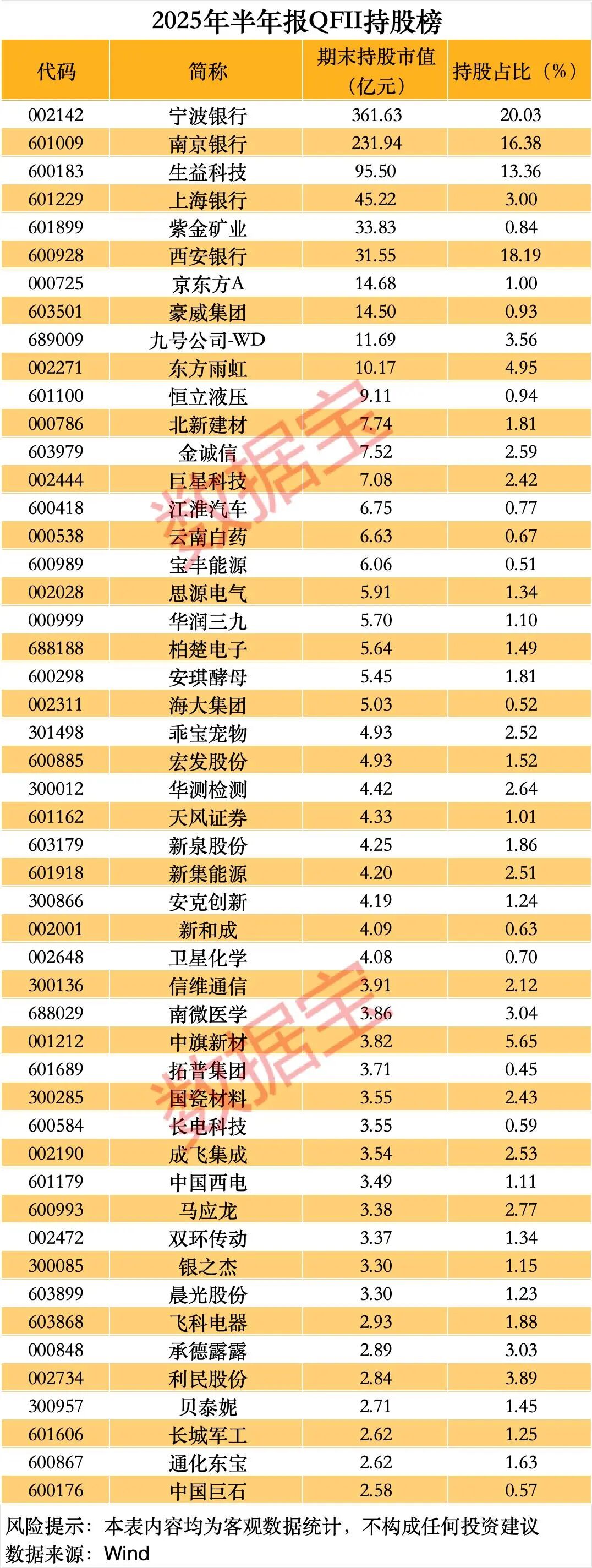 机构最新动向抢先看。 随着A股2025年半年报披露落下帷幕,机构投资者在第二季度的调仓换股动作成为市场关注的焦点。 证券时报·数据宝制作并发布了《2025年半年报社保基金持股榜》《2025年半年报QFII持股 ...