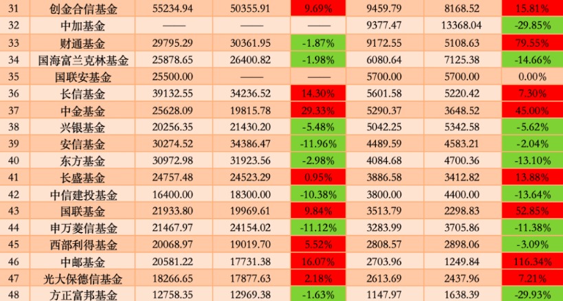 63家公募2025年上半年盈利排行榜出炉。 据澎湃新闻记者不完全统计,截至目前,已有至少63家基金公司2025年上半年营业收入和净利润的数据出炉。 整体来看,有5家公募净利润超10亿元,并均实现了营收与净利双增;25家公募位列“1亿元-10亿元”梯队,有的弯道超车,有的面临增长瓶颈;33家公募净利则低于1亿元,其中2家净利翻倍,6家有所减亏。 具体到公司,易方达基金仍以18.77亿元的净利润稳坐龙头位置;南方基金、广发基金的上半年净利润分别为11.94亿元、11.80亿元,排名反超华夏基金;兴证全球基金重新跻身“十强俱乐部”,汇添富基金跌出前十。 汇添富基金跌出十强俱乐部 与2024年上半年相比,十强俱乐部成员已有所变化,其中易方达基金仍稳坐龙头位置,剩余9家公募位次均被洗牌。 具体来看,易方达基金以近59亿元的营业收入和18.77亿元的净利润领跑全行业。与2024年同期相比,其营收增长9.71%,净利润增幅更是高达23.84%,增速在头部公司中位居前列。 紧随其后的工银瑞信基金虽未披露营业收入,但其以17.45亿元的净利润位居第二,净利同比增长29.64%。作为银行系基金公司的代表,工银瑞信基金依托工商银行的渠道优势,在固收+及养老金业务上的深耕正逐步转化为利润贡献。 值得一提的是,南方基金、广发基金的上半年净利润反超华夏基金分别位列第三、第四位。 其中,南方基金实现营收37.97亿元,同比增长11.65%;净利润达11.94亿元,同比增长15.24%。南方基金在主动权益与指数产品上双线推进,上半年尤其在港股通、科技主题基金方面表现亮眼,或成为业绩增长的重要支撑。 广发基金上半年营收同比增长22.17%至38.98亿元,净利润更是飙升43.54%至11.80亿元,增幅在前十强中遥遥领先。 华夏基金以42.58亿元的营收位列第五,同比增长16.05%;净利润11.23亿元,同比增长5.78%。澎湃新闻记者注意到,华夏基金的营业收入比南方基金、广发基金都要高,但净利润增速却相对温和,这或意味着华夏基金的成本支出要更高。 此外,2025年上半年净利润排名第六名至第十名依次是:富国基金(9.24亿元)、天弘基金(9.17亿元)、招商基金(7.89亿元)、博时基金(7.63亿元)、兴证全球基金(7.19亿元)。 其中,富国基金、博时基金、兴证全球基金均实现了营收净利双增,而天弘基金、招商基金则增收不增利,净利润分别同比下滑2%、6.81% 。 与此同时,汇添富基金跌出十强俱乐部,兴证全球基金重新进入前十。 ![]() 图1:净利润前十的头部公募;来源:澎湃新闻记者丁欣晴据公募股东2025年半年报数据统计 上银、诺安、鑫元从“千万级盈利”跃升为“亿元盈利” 在第11至第48名的“腰部阵营”中,部分公司在战略调整或市场机遇下实现跃升,而另一些则面临增长瓶颈甚至利润大幅下滑。 据澎湃新闻记者统计,有21家公募净利润较2024年同期出现逆势增长,16家公募净利润则呈现不同幅度的缩水,另有1家公募净利润与去年同期持平。 其中,景顺长城基金、中欧基金、鹏华基金、银华基金、兴业基金、永赢基金、万家基金、长城基金、诺安基金、鑫元基金、创金合信基金、长信基金、中金基金、长盛基金、国联基金、中邮基金、光大保德信基金这17家公募均实现了营收与净利的双增(编注:部分公募母公司年报未披露子公司营业收入)。 具体来看,在亿元俱乐部中,中欧基金营收同比增长16.43%至18.49亿元,净利润更是涨42.23%至4.02亿元;兴业基金营收增长近三成,净利润也增长43.71%,达到2.4亿元;永赢基金同样表现抢眼,营收同比增长42.16%,净利润同比飙升80.20%至1.82亿元,展现出强劲的增长动能。 此外,与2024年同期相比,上银基金(1.52亿元)、诺安基金(1.18亿元)、鑫元基金(1.07亿元)从“千万级盈利”跃升为“亿元盈利”。 相比之下,汇添富基金虽营收增长5.33%,但净利润却由2024年同期的6.90亿元降至4.80亿元,降幅达30.43%,成为头部公司中利润缩水最严重的公司。 同时,华泰柏瑞基金在2025年上半年则是营收与净利双降,其中利润端压力明显,从3.20亿元下滑至2.04亿元,降幅达36.16%。 ![]() 图2:净利润过亿元的20家腰部公募(排名承接图1,单位为万元);来源:澎湃新闻记者丁欣晴据公募股东2025年半年报数据统计 另一方面,2025年上半年净利润过千万的腰部公募梯队,共有18家公司。其中有9家基金公司上半年净利润承压,占比达五成。 具体来看,中加基金、方正富邦基金上半年净利润同比下滑超29%,分别为9377.47万元1147.97万元。其中,中加基金是腰部阵营中唯一一家跌出“亿元俱乐部”的公募。 与之相对的是,财通基金、中金基金、国联基金、中邮基金上半年净利润的增幅均在40%以上,分别为9172.55万元、5290.37万元、3513.79万元、2703.96万元。 ![]() 图3:净利润在千万以上的18家腰部公募(排名承接图2,单位为万元);来源:澎湃新闻记者丁欣晴据公募股东2025年半年报数据统计 尾部众生相:扭亏、减亏与持续探底 据澎湃新闻记者不完全统计,目前有7家尾部公募的2025年上半年净利润位列百万梯队,分别为华富基金(873.17万元)、富安达基金(860.14万元)、中海基金(688.26万元)、东兴基金(513.53万元)、东吴基金(493.08万元)、信达澳亚基金(378.36万元)、国金基金(246.44万元)。 其中,中海基金上半年净利增幅高达233.75%,富安达基金、东吴基金则上演“绝地反击”,跳出亏损泥沼。富安达基金的净利润更是由2024年同期时的-2680.90万元增至860.14万元;对此,股东方南京证券在202