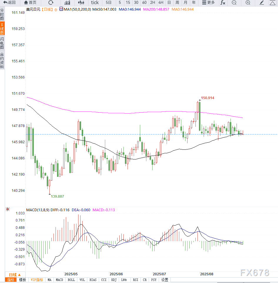 周一开盘,美元兑日元一度走高至147中段,但并未突破区间。投资者在美国劳动节假期前保持谨慎,交投清淡。 ![]() 日本央行可能加息的预期依然存在,与美联储未来两次降息的市场押注形成鲜明对比。这种政策分歧在中期内对美元兑日元构成压制。 机构观点认为:“如果日本央行在年内加息,而美联储启动降息周期,日元将迎来更大升值空间。” 最新数据显示,日本8月制造业PMI为49.7,虽仍在荣枯线下方,但下滑速度放缓。同时,日本财务省报告显示,企业在4-6月资本支出同比增长7.6%,反映出企业投资意愿增强。 美元兑日元仍处于近四周整理区间,146.70为关键支撑,若有效跌破,可能下探146.20甚至146.00关口。上方阻力在147.45-147.50区域,若突破148整数位,可能触发短线空头回补,目标指向148.75-148.80区间,接近200日均线。 整体来看,走势依旧受制于区间震荡格局。 ![]() 美元兑日元短期仍将维持拉锯:避险需求与日本央行收紧预期为日元提供支撑,而美国数据若继续稳健,可能限制日元的升值空间。真正打破现有格局的关键,仍需等待本周美国就业数据与日本央行的进一步政策信号。 ![]() |