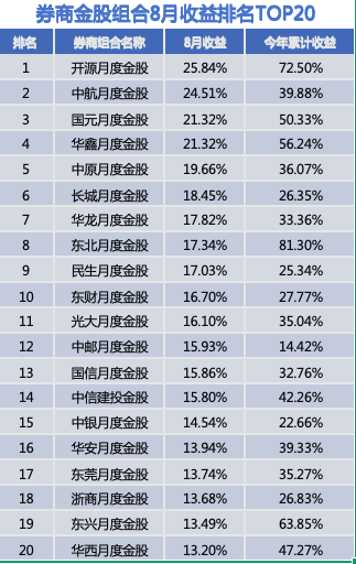 8月,A股市场行情向好,券商金股组合普遍获得较高收益。每市App数据显示,开源证券金股组合以25.84%的月度收益率排名第一,中航证券、国元证券分列第二、第三位,单月收益均超20%。 个股方面,有3只金股在8月 ...