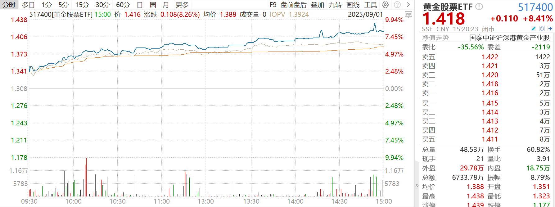 每经编辑|彭水萍 A股今日集体上涨,截至收盘,上证指数涨0.46%,深证成指涨1.05%,创业板指涨2.29%。板块题材上,贵金属、有色金属、创新药、CPO、存储芯片板块涨幅居前。 黄金股票ETF(517400)收盘大涨8.41% 矿业ETF(561330)收盘大涨4.04% 【上涨原因分析】降息预期持续升温 当地时间8月28日,美联储理事沃勒发表鸽派讲话,再次呼吁降息。他表示将在9月支持降息25个基点,并预计未来三到六个月内将有进一步的降息。如果就业数据显示美国经济“显著疲软”,他可能支持大幅降息。 此前,特朗普签署行政令解除美联储理事库克职务,若通过法律程序意味着美联储理事会在一个月内迎来第二次席位空缺。另外,特朗普已多次猛烈抨击鲍威尔甚至威胁将其解雇。特朗普近期对美联储的干预越发严重,引发市场对美联储独立性的进一步担忧。 到2026年美联储人事换届后,偏向特朗普的鸽派官员阵营将会继续扩大,市场担心美联储会配合财政宽松而降息,对美元信用不利。降息预期继续升温、美元配置价值受到冲击,黄金再度发挥对冲功能。今日SHFE黄金价格突破800元/克,日内涨幅超2%。 消息面上,多家矿企发布财务报告,业绩显著增长。据Wind数据,2025H1有色矿业指数成分股的营业收入同比增长5.72%,归母净利润同比增长46.05%,业绩表现亮眼。其中贵金属板块的营收和归母净利润同比增速相对领先,分别达到27.15%和64.71%。 【后市展望】宽松环境下看好贵金属和资源股板块 贵金属方面,在货币超发及财政赤字货币化背景下,美元信用体系受到挑战;加上全球地缘动荡频发推动资产储备多元化,黄金作为安全资产的需求持续提升。全球“去美元化”的趋势使得黄金有望成为新一轮定价锚,使得贵金属有望具备上行动能。央行购金趋势仍在持续,中国央行公布最新黄金储备数据显示,7月末黄金储备7396万盎司,环比继续增加6万盎司,这是中国央行连续第九个月增持黄金。后续可持续关注地缘政治形势、全球宏观经济走势及全球央行购金情况。 黄金股票整体走势与金价走势呈正相关关系,金价上涨有望为黄金股票贡献利润弹性。黄金股票ETF(517400)的标的指数是中证沪深港黄金产业股票指数,该指数从A股和港股市场中选取50只涉及黄金采掘、冶炼及销售等业务的上市公司证券作为指数样本,覆盖黄金采掘、冶炼、销售等全产业链环节,也包含黄金珠宝板块公司,有望受益于新消费催化。当前黄金股票的估值处于历史中等水平,投资者可以关注黄金股票ETF(517400),把握黄金全产业链的投资机会。 此外,黄金基金ETF(518800)直接投资在实物黄金上,价格或者净值的走势与国内黄金价格走势相同。感兴趣的投资者也可以布局黄金基金ETF(518800)。 工业金属方面,下半年随着风光抢装、抢出口等因素减弱,但供给弹性不足之下,其供需恶化幅度有限且已在预期内,后续随着美联储降息、国内刺激政策加码,有望呈现“弱现实、稳预期”状态。目前来看,铜的消费淡季接近尾声,金九银十提前备货有望在库存端给予铜价支撑;铝价依然聚焦金九银十的库存去化情况,受美国铝关税的影响相对有限,有基本面支撑的铝价韧性较强。综合来看,降息预期有望带来铜铝等工业金属的上行趋势。 能源金属和小金属方面,重视当下的配置机遇。稀土作为核心战略金属代表,涨价和供给侧改革共振,有望延续上行趋势;钨价伴随宏观预期转暖、供给刚性延续,有望走出长牛。此外,钴、镍等金属受益于供给集中度较高、海外资源国控制供给,战略价值凸显,价格底部夯实。 在降息预期升温的宽松周期下,利多全球定价的资源股板块。有色资源股的供需基本面有长期支撑,对宏观宽松敏感度高,高景气有望延续。感兴趣的投资者可以关注矿业ETF(561330)和有色60ETF(159881)。矿业ETF(561330)跟踪中证有色金属矿业主题指数,更聚焦有色行业中拥有有色金属矿产资源储量的上市公司,大国博弈背景下,自主矿产资源的价值凸显;有色60ETF(159881)跟踪中证有色金属指数,实现稀有金属、工业金属、贵金属全覆盖。 风险提示: 本速评已力求报告内容的客观、公正,但对这些信息的准确性和完整性不作任何保证,文中的观点、结论和建议仅供参考,相关观点不代表任何投资建议或承诺。行业或板块短期涨跌幅列示仅作为市场行情分析的辅助材料,仅供参考,不构成投资建议或承诺。 我国基金运作时间较短,不能反映股市发展的所有阶段。基金管理人承诺以诚实信用、勤勉尽责的原则管理和运用基金资产,但不保证本基金一定盈利,也不保证最低收益。基金的过往业绩及其净值高低并不预示其未来业绩表现。基金管理人提醒投资人基金投资的“买者自负”原则,在做出投资决策后,基金运营状况与基金净值变化引致的投资风险,由投资人自行负担。基金有风险,购买过程中应选择与自己风险识别能力和承受能力相匹配的基金,投资需谨慎。 投资人应当充分了解基金定期定额投资和零存整取等储蓄方式的区别。定期定额投资是引导投资人进行长期投资、平均投资成本的一种简单易行的投资方式。但是定期定额投资并不能规避基金投资所固有的风险,不能保证投资人获得收益,也不是替代储蓄的等效理财方式。 |