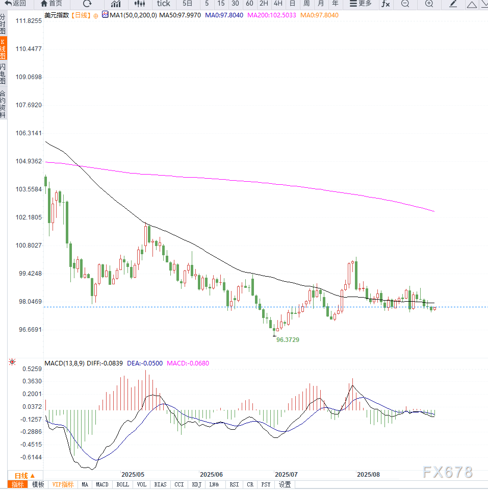 周二早盘,美元在亚洲交易中小幅回升,美元指数上涨0.1%至97.709,结束此前的连跌走势。此前,投资者因担忧白宫过度干预美联储,纷纷抛售美元,转向黄金等避险资产。 ![]() 欧元小跌至1.1707,因最新数据显示欧元区制造业PMI在8月实现三年来首次扩张。澳元结束五连涨,微跌0.1%至0.6549,仍接近两周高点;纽元持平于0.5903;英镑小幅回落0.1%至1.3539,从周一创下的两周高点回落。。 未来几日,美国8月经济数据将成为市场焦点,包括ISM制造业与服务业PMI以及非农就业报告。投资者将借此评估特朗普政策对美国工业与就业的冲击。 从日线走势来看,美元指数近期五连跌后在97.50附近获得支撑,短期阻力位在98.20至98.50区间。若反弹受阻并回落,可能再度测试97.20的关键支撑。 技术指标方面,RSI徘徊在40附近,显示动能偏弱,MACD仍在零轴下方,暗示美元指数反弹力度有限,趋势依旧偏空。 ![]() 美元短期走势受政策干扰与经济数据双重牵制。在美联储独立性存疑之际,黄金成为避险主线,短期内仍有进一步走高的可能。若即将公布的非农与PMI数据不及预期,美元或再度承压,黄金有望继续刷新阶段高点。 ![]() |