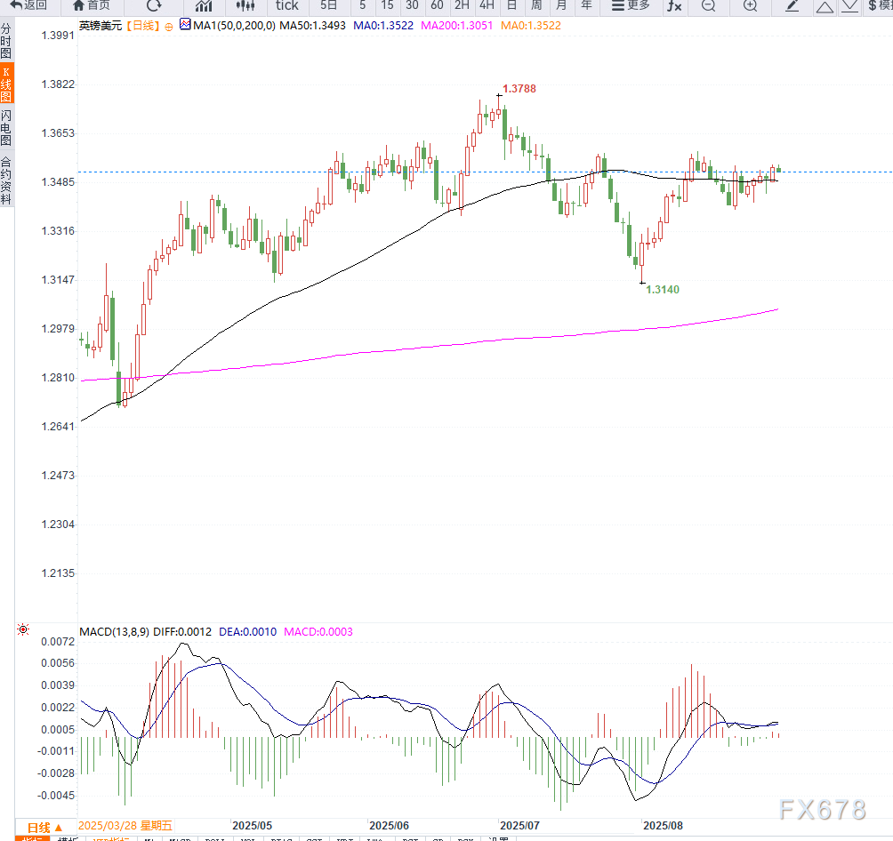 周二亚洲盘面,英镑兑美元自前一交易日的反弹中回落,现报1.3520附近。美元因美国通胀压力持续而走强,市场对美联储9月政策路径保持谨慎,令英镑承压。 ![]() 英国方面,随着议会结束休会,财政委员会将质询英国央行(BoE)官员,投资者将关注政策前景信号。近期英国通胀仍然顽固,减少了进一步降息的可能性。 英国央行货币政策委员会成员Catherine Mann上周表示,利率应持续保持在较高水平,以对抗通胀风险。这在一定程度上为英镑提供底部支撑。 从日线来看,英镑兑美元在1.3500附近存在关键支撑,若跌破,或将测试1.3460甚至1.3420区域。上方阻力位在1.3580与1.3620,突破后有望打开进一步反弹空间。 技术指标方面,MACD动能柱收窄,RSI位于中性水平附近,显示短期内英镑或维持区间震荡格局。 ![]() 整体来看,GBP/USD短线走势取决于美联储政策信号与美国就业数据。若非农数据疲软,将强化降息预期,从而压制美元、支撑英镑。 但若数据超预期强劲,美元或再度走高,英镑可能跌破1.35关口。与此同时,英国通胀粘性与央行偏鹰立场,仍是限制英镑跌幅的重要因素。 ![]() |