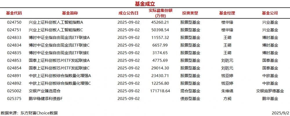 每经AI快讯,据东方财富Choice数据统计,今日共有11只基金公告成立(A/C类分开计算),包括9只股票型基金、1只债券型基金和1只混合型基金。