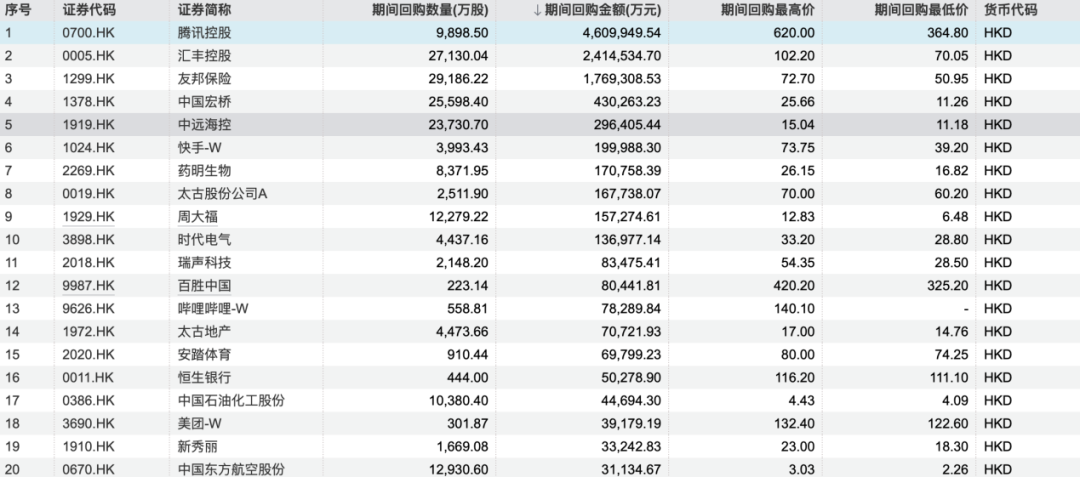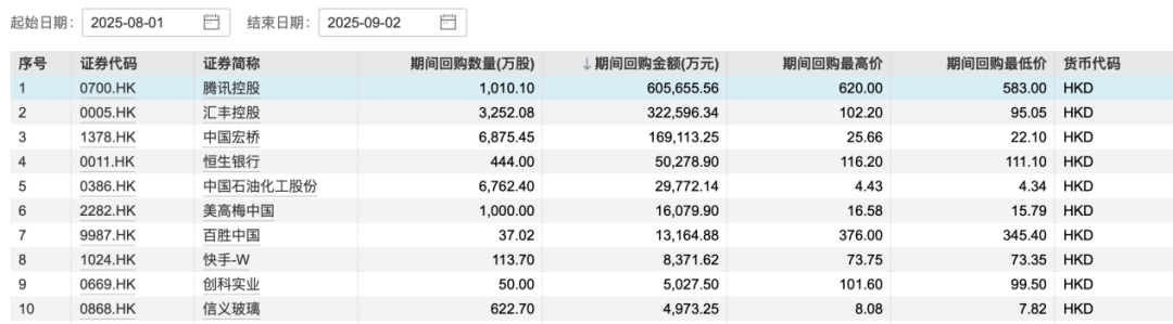 【导读】8月以来,腾讯连续11日累计回购超60亿港元,居同期第一 8月18日起,腾讯已连续11个交易日实施回购,累计回购60.57亿港元,居同期第一。拉长时间,2025年年内,腾讯累计回购金额仍居同期第一,互联网 ...