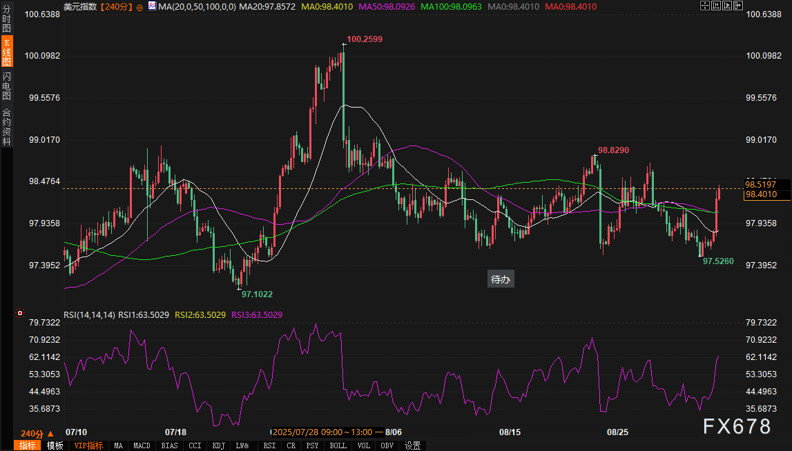 周二(9月2日),美国国会复会,距离9月30日这个财政拨款的最后期限已不足一月,政府关门风险升温。与此同时,美联储即将召开9月议息会议,市场普遍预期降息,但通胀与就业数据相互矛盾,使得决策面临两难。在这一背景下,美元指数显示出明显的上涨动能,技术面与基本面相互交织,为交易者提供了复杂的分析视角。 ![]() 美元的强势并非空穴来风,其背后是多重基本面因素的共振。 1. 潜在的政府关门风险: 美国国会复会,但两党在联邦预算拨款问题上依旧存在严重分歧,使得9月30日的最后期限迫在眉睫。虽然历史经验表明,政府关门通常持续时间不长,但在当前两党关系紧张的背景下,市场避险情绪升温。这种不确定性通常会促使资金流入被视为“避险天堂”的美元资产,从而推升美元指数。特别值得关注的是,共和党在众议院虽占多数,但在参议院需要民主党的支持才能通过拨款法案,这增加了博弈的复杂性,也加剧了市场的担忧。 2. 美联储政策的矛盾与展望: 尽管市场普遍预期美联储将在9月降息25个基点,但决策背后的数据却充满了矛盾。近期美国就业增长虽显疲软,但失业率依然保持在4.2%的低位,且薪资增长率维持在4%左右,足以支持消费并抵消部分通胀压力。知名机构的分析师们也对此看法不一,形成了两派:一派认为劳动力市场可能处于崩溃边缘,美联储应提前行动降息以防范风险;另一派则认为,在薪资持续增长和劳动力供应下降的背景下,就业市场的缓慢增长可能成为新常态,通胀风险依然是首要关切。 这种分歧使得美联储的决策充满不确定性。虽然鲍威尔在杰克逊霍尔会议上为降息打开了大门,但他也强调,不会让一次性的物价上涨演变为持续的通胀问题。因此,即将公布的8月就业和通胀数据将至关重要,它们将成为决定美联储9月是否降息,以及未来政策走向的关键参考。市场的这种不确定性,使得交易者在美联储会议前更倾向于持有美元,以对冲潜在的政策意外。 3. 债市的强力支撑: 美元的强势也得到了美国国债收益率的强力支撑。近期的收益率跳涨尤为引人注目:10年期美债收益率升至4.287%,2年期美债收益率达到3.656%,而30年期美债收益率更是大涨至4.980%,创下7月中旬以来的新高。美债收益率的全面走高,特别是长端收益率的飙升,增强了美元资产的吸引力。这不仅反映出市场对美国经济的信心,也可能是对未来通胀预期的一种反应。 此外,与美国债市形成鲜明对比的是,欧洲主要国家的长期国债收益率也因投资者对其财政健康的担忧而大幅走高。例如,法国因其政府面临不信任投票而引发的预算赤字担忧,使得30年期国债收益率升至自2009年以来的高位;德国长期国债收益率也升至2011年以来的最高。这种差异化的走势,特别是欧洲央行可能因高于预期的通胀数据而被迫维持高利率的压力,使得美元相对于欧元等主要货币更具优势。 技术面:美元指数强势突破,多头动能显著 正如240分钟图所示,美元指数当前报98.3949,日内上涨0.74%。这一表现是在一系列技术指标支撑下完成的。 首先,从均线系统看,美元指数在240分钟图上已站稳所有关键短期均线上方。20周期简单移动平均线(SMA)位于97.8576,50周期SMA位于98.0926,而100周期SMA则在98.0964附近。这些均线正形成多头排列,且最新价格已远超所有这些支撑位,显示出强劲的上涨趋势。尤其值得注意的是,价格在近期探底97.1022后,便开始稳步回升,并突破了前期98.8290的高点,随后虽有回落,但迅速反弹,目前已逼近甚至超过了98.5197这个短期关键阻力,这表明市场对美元的看涨情绪强烈,卖盘力量相对较弱。 其次,从相对强弱指数(RSI)来看,当前RSI值为63.5235。这个数值表明美元指数处于强势区域,但尚未达到超买的极端水平(通常高于70),这为后续的上涨提供了潜在空间。RSI的稳步上升与价格走势同步,也印证了当前多头趋势的健康。 美元指数的技术面分析指向清晰:在突破了多个关键阻力位后,市场形成了新的上涨通道。尽管短期内可能会出现回调,但只要价格维持在关键均线上方,特别是98.09附近的水平之上,多头格局就难以改变。当前价格的回升,似乎正在对前期高点进行测试,若能有效突破并站稳,则可能为进一步上行打开空间。 ![]() 展望未来,美元指数的走势仍将受到上述多重因素的深刻影响。从技术面看,目前美元指数已成功突破关键阻力,建立了稳固的多头基础。只要价格维持在98.09上方,上涨趋势就可能延续,下一个目标将是进一步测试甚至突破前期高点。 从基本面来看,短期内最大的不确定性来自美联储的政策走向和即将公布的经济数据。如果8月就业和通胀数据能为美联储的降息决策提供清晰的信号,可能会引发市场的剧烈波动。然而,如果数据依然矛盾,美联储内部的争论加剧,那么美元的避险属性和利率优势将继续吸引资金流入,支撑其强势。 此外,美国国会内部的政治博弈也将是美元走势的另一大变量。任何关于避免政府关门的积极进展都可能短期内缓解市场的避险情绪,而任何僵局都可能加剧美元的避险买盘。 综上所述,美元指数在技术面和基本面的共同作用下,已呈现出清晰的上升态势。在接下来的交易日中,市场焦点将集中于美国国会拨款谈判的进展以及美联储会议前的关键经济数据。交易者需密切关注这些动态,以应对潜在的市场波动。 ![]() |