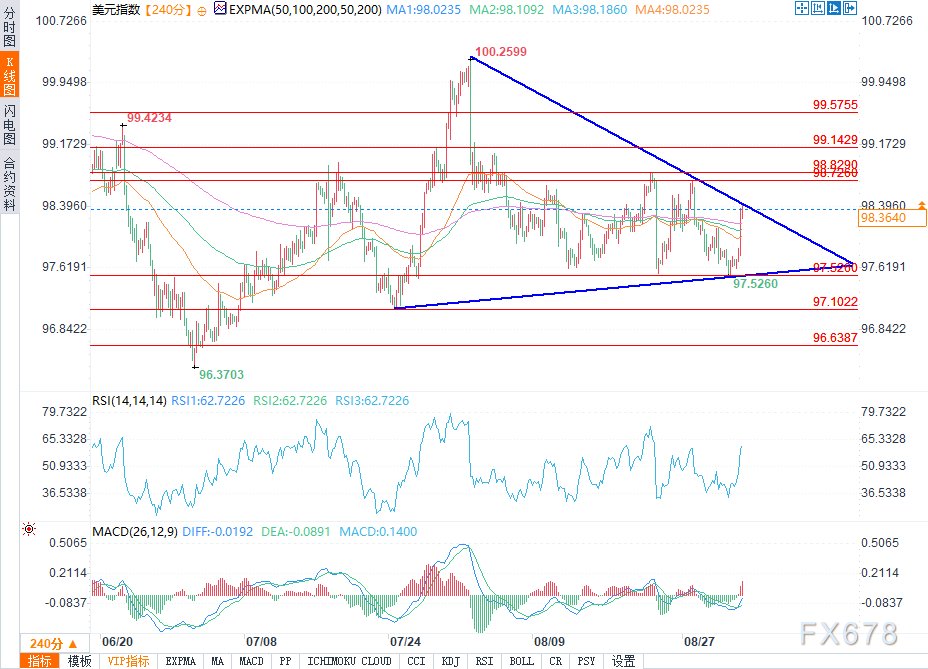 周二 9月2日 欧洲交易时段 美元指数 DXY 盘中小幅走高 升至98 37附近 涨幅约0 71 此前 美元指数曾触及7月28日以来的最低水平 目前市场注意力已转向即将公布的美国8月ISM制造业PMI 采购经理人指数 地缘政治风险为 ...