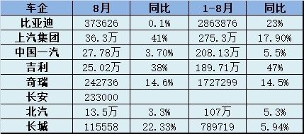 随着8月收官,不少车企赶在9月第一天(9月1日)晒出成绩单。在政策利好与消费需求释放的双重推动下,8月车市呈现出诸多亮点。其中,自主品牌依然是当前车市主力,新势力中也不乏品牌创出交付新高,相比之下豪华及合资仅个别品牌发布了销量,声量较小。 海外渐成自主比拼“新阵地” 8月,比亚迪、上汽、一汽销量均超过或接近30万辆,吉利、奇瑞、长安也都超过23万辆,位居行业前列。值得注意的是,伴随国内市场竞争的愈发激烈,海外市场正在成为新能源之后,自主品牌比拼的重点。 作为新能源汽车的领军企业,比亚迪8月销量继续稳定在37万辆的高位,前8月其累计销量达286.4万辆;对比来看,其海外市场8月销量则是同比增长146.4%至8万辆,前8月累计销量已超过63万辆。按照比亚迪全年550万辆、国外80万辆的销量目标,其整体销量目标明显承压,但在海外市场却有望实现超越。 上汽更是将海外市场与自主、新能源并列为深化改革、推进转型的“新三驾马车”。8月,上汽海外销量8.8万辆,同比增长10.5%;新能源销量13万辆,同比增长49.9%;自主品牌销量23.2万辆,同比增长49.5%,成为集团“挑大梁”的存在。 当然,若论海外市场的实力,奇瑞无疑是No.1。8月,奇瑞出口汽车12.9万辆,同比增长32.3%,不仅连续4个月出口突破10万辆,且创造了单月出口新纪录,继续保持中国汽车出口第一;前8月,奇瑞累计出口已达到79.9万辆,同比增长10.8%。同时,奇瑞在新能源领域也是表现不俗,8月销量同比增长53.1%至7.1万辆。 相比之下,吉利在新能源领域的表现更为亮眼。其8月新能源销量再创新高至14.7万辆,同比增长95%;前8月累计销量已突破百万辆。这也让吉利成为新能源销量仅次于比亚迪的车企,凸显出吉利《台州宣言》下,“一个吉利”战略的聚合效应正逐步显现。 此外,长安汽车发布了7月29日挂牌成为新央企之后的首月销量。8月,长安销量23.3万辆,其中,新能源销量8.8万辆,海外销量5.6万辆。长城8月销售11.6万辆,创历史最佳8月销量表现。 新势力持续“狂飙” 新势力品牌,8月继续呈现向上态势。其中,零跑以5.7万辆创下新势力的月销新高,继续领跑新势力品牌。同时,鸿蒙智行8月销量近5万辆,小鹏、蔚来、小米也都超过3万辆。 得益于B01、新款C11/C16/C10、B10等极富竞争力的新品密集投放,零跑今年以来的销量持续攀升。按照目前增速,零跑9月有望冲击6万辆月销大关。排名第二的鸿蒙智行,目前仍主要依赖问界品牌的表现,其8月销量达到40012辆,占到鸿蒙智行九成销量;伴随智界、享界、尊界等新车的逐渐发力,鸿蒙智行或将迎来新的爆发。 小鹏和蔚来8月销量均创下新高。小鹏成都车展前夕推出全新P7,按照新车7分钟锁单破万台的火爆趋势,或将助力小鹏后续销量进一步攀升。蔚来方面,销量增长的主要动力来自旗下乐道品牌L90的交付释放,新车在首个完整交付月即突破万辆,位居中大型SUV前列。 得益于YU7上市时收获的大量订单,小米连续第二个月销量突破3万辆。理想方面,虽然是头部新势力中唯一未能突破3万辆的品牌,但其8月销量也不乏亮点,MEGA当月交付突破3000辆,一举拿下纯电MPV车型销量冠军。此外,传统车企的新品牌之中,深蓝、埃安8月也都实现了接近3万辆的销量。 合资反攻新能源 有分析认为,伴随新势力的突飞猛进,尤其是高端新能源车型的攻城略地,直接导致了曾经的豪华车市引领者――奔驰、宝马、奥迪(BBA),在中国市场呈现出每况愈下。当前在网上流传的一份豪华车市销量周报也显示,问界M8在8月已连续多周位居该榜单榜首。 尽管无法确认该榜单的数据来源,但BBA官方发布的在华销量,也体现出其当前面临的困境。数据显示,今年上半年,奔驰、宝马、奥迪在华分别交付29.32万辆、31.81万辆、28.87万辆,同比均有着两位数下滑。 不过,值得注意的是,今年以来,BBA全新电动平台的新车型正加速落地,例如奔驰MMA平台的CLA、宝马Neue Klasse平台的iX3、奥迪PPE平台的Q6L e-tron(8月已上市)等。新车的到来,能否一举扭转BBA当前在新能源领域的颓势,值得持续关注。 BBA之外,合资品牌近年来也持续受到包括新势力在内的自主品牌的冲击。也因此,每月首日的销量“大比”中,合资品牌都是沉默寡言的那一拨。不过,作为合资品牌的领头羊,一汽-大众8月表现依然可圈可点。 数据显示,一汽-大众8月实现整车销售13.58万辆(含进口车),同比增长4.2%。其中,大众品牌销售7.90万辆,同比增长1.9%;奥迪品牌凭借新品上市的势能,斩获4.58万辆(含进口车)销量,国产豪华燃油车市场份额排名第一。 捷达品牌方面,8月28日,一汽集团、大众汽车集团(中国)与成都经济技术开发区正式签署《捷达事业发展合作协议》,以推动其电动化转型。这一举措不仅开启了政企合资新范式,更将助力一汽-大众加速布局入门级智能电动出行市场。 无论是传统自主品牌在新能源和海外市场的不断加码,还是新势力品牌的持续向上,亦或是合资品牌的奋力追赶,都为8月的乘用车市场注入了新的活力。随着“金九银十”传统销售旺季的到来,以及各地刺激政策的持续落地,未来车市竞争将更加激烈,市场格局也有望进一步重塑。(中国经济网记者 郭涛) (责任编辑:郭健东 )