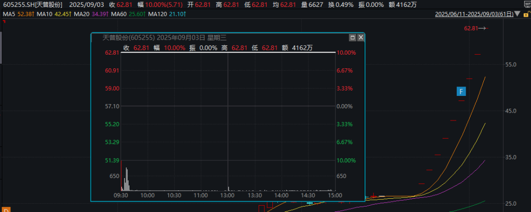 A股今日走势分化,沪指跌超1%一度失守3800点,创业板指相对强势;港股走势疲弱,恒生科技指数跌近1%。 具体来看,沪指盘中在金融、酿酒等板块的拖累下弱势下探,午后跌超1%,一度失守3800点大关;创业板指宽幅震荡,盘中一度涨约2%。截至收盘,沪指缩量跌1.16%报3813.56点,深证成指跌0.65%报12472点,创业板指涨0.95%报2899.37点,上证50、科创50、北证50指数均跌逾1%,沪深北三市合计成交23961亿元,较此前一日减少5167亿元。 场内超4500股飘绿,券商、保险、银行板块集体走低,国盛金控一度逼近跌停,中国人寿、新华保险等跌超2%;军工板块大幅下挫,北方长龙、中天火箭、长城军工等多股跌停;创新药概念逆市活跃,百花医药、辰欣药业、人福医药等涨停,百利天恒涨超13%,盘中续创新高;固态电池概念崛起,亿纬锂能涨约12%,海博思创等涨停;光刻机概念盘中拉升,泰和科技20%涨停,苏大维格涨11%。黄金概念热度不减,西部黄金斩获3连板。强势个股及异动股方面,天普股份(605255)连续9日涨停,续创历史新高;杰恩设计(300668)尾盘最后一分钟直线拉升超20%。 固态电池概念活跃 固态电池概念盘中走势活跃,截至收盘,海博思创、泰和科技20%涨停,亿纬锂能涨超12%,鹿山新材连续两日涨停。 ![]() 亿纬锂能今日发布消息称,9月2日,公司固态电池研究院成都量产基地正式揭牌,“龙泉二号”全固态电池成功下线。 据介绍,公司成都基地全面投产后年产能近50万颗电芯。基地分两期建设,一期将于2025年12月建成,具备60Ah电池制造能力;二期计划于2026年12月实现100MWh年产能交付。此次下线的“龙泉二号”为10Ah全固态电池,能量密度高达300Wh/kg、体积能量密度为700Wh/L,主要面向人形机器人、低空飞行器以及AI等高端装备应用领域。 此外,中国汽车工程学会将于2025年9月10日—9月11日在北京召开《固态电池材料评测用模具电池装配方法》等10项固态电池团体标准送审审查会及《硫化物全固态电池硫化氢产气量评价方法》等5项标准项目启动会。汇报单位包括国联汽车动力电池研究院、清华大学、深圳市比亚迪锂电池有限公司、北京卫蓝新能源科技、中国第一汽车集团、北京航空航天大学、中汽研新能源检验中心(天津)等。机构表示,标准制定是产业化的必要环节,也是路线清晰化的关键指引,参会单位重量级较高,预计将推动固态电池行业新一轮加速。 华西证券认为,在海内外动力和储能需求持续攀升的带动下,产业链排产及出货量有望不断提升,在需求扩大以及“反内卷”趋势下,锂电材料价格有望企稳回升。此外,电池技术的升级迭代始终是终端需求扩大的核心推动力,固态电池凭借高能量密度以及高安全性等优势,成为确定性的下一代电池技术方向。随着电池技术的成熟以及产业链配套的完善,固态相关新产品有望陆续发布、产能建设不断落地、终端性能预计持续获得验证,固态电池的产业化进程加速。 天普股份9连板 今日,天普股份一字涨停,这也是公司股价连续第9个交易日涨停,续创历史新高。截至收盘,公司股价报62.81元/股,总市值84亿元。 ![]() 昨日(9月2日)晚间,公司发布了股票交易严重异常波动公告。公告显示,公司基本面未发生重大变化,但近期公司股票价格严重脱离公司基本面情况,投资者参与交易可能面临较大风险,如公司股价进一步异常上涨,公司可能申请停牌核查。 天普股份主要从事汽车用高分子材料流体管路系统和密封系统零件及总成的研发、生产及销售。2025年上半年,天普股份共实现营业收入1.51亿元,同比下降3.44%;实现归属于上市公司股东的净利润1129.8万元,同比下降16.08%。 8月21日,天普控股、天昕贸易、尤建义与中昊芯英签署了《股份转让协议》(一)。同日,普恩投资、天昕贸易与自然人方东晖签署了《股份转让协议》(二)。同日,中昊芯英、海南芯繁、方东晖与天普控股签订《增资协议》。 根据上述协议约定,《增资协议》以相关股份转让完成为前提。增资后,中昊芯英和海南芯繁合计持有天普控股50.01%股权,杨龚轶凡将能够通过控制中昊芯英和海南芯繁控制天普控股,并通过天普控股控制上市公司,杨龚轶凡将成为上市公司实际控制人。 据天普股份8月21日晚公告,本次交易旨在助力上市公司发展,优化上市公司股东结构和治理水平,优化资源配置,拟通过协议转让及要约收购方式引入收购方,为上市公司发展提供新的动力,同时促进新质生产力,借助资本市场平台实现高质量发展。 8月22日,天普股份迎来复牌,公司股价随后出现连续涨停。 天普股份在9月2日晚公告中表示,截至2025年9月2日,公司总股本1.34亿股,公司控股股东天普控股、实际控制人尤建义及其一致行动人合计持有公司股票1.01亿股,占公司总股本的75%;其余为外部流通股,流通盘较小,可能存在非理性炒作风险。 杰恩设计尾盘异动 今日尾盘,杰恩设计出现异动,在距离收盘最后1分钟,公司股价从下跌超3%直线拉升超20%,最终收涨17.71%,报20.6元/股,总市值25亿元。 ![]() 公开资料显示,公司系国内知名的建筑室内设计解决方案及技术服务提供商。公司半年报显示,公司主要业务包括市场商务及服务支持业务(为疫苗厂商在指定区域内提供整套市场商务及服务支持等相关解决方案,业务覆盖商务支持服务、市场推广服务与信息服务的全链条,当前核心聚焦于非免疫规划疫苗推广)和室内设计业务。 上半年,公司实现营业收入2.34亿