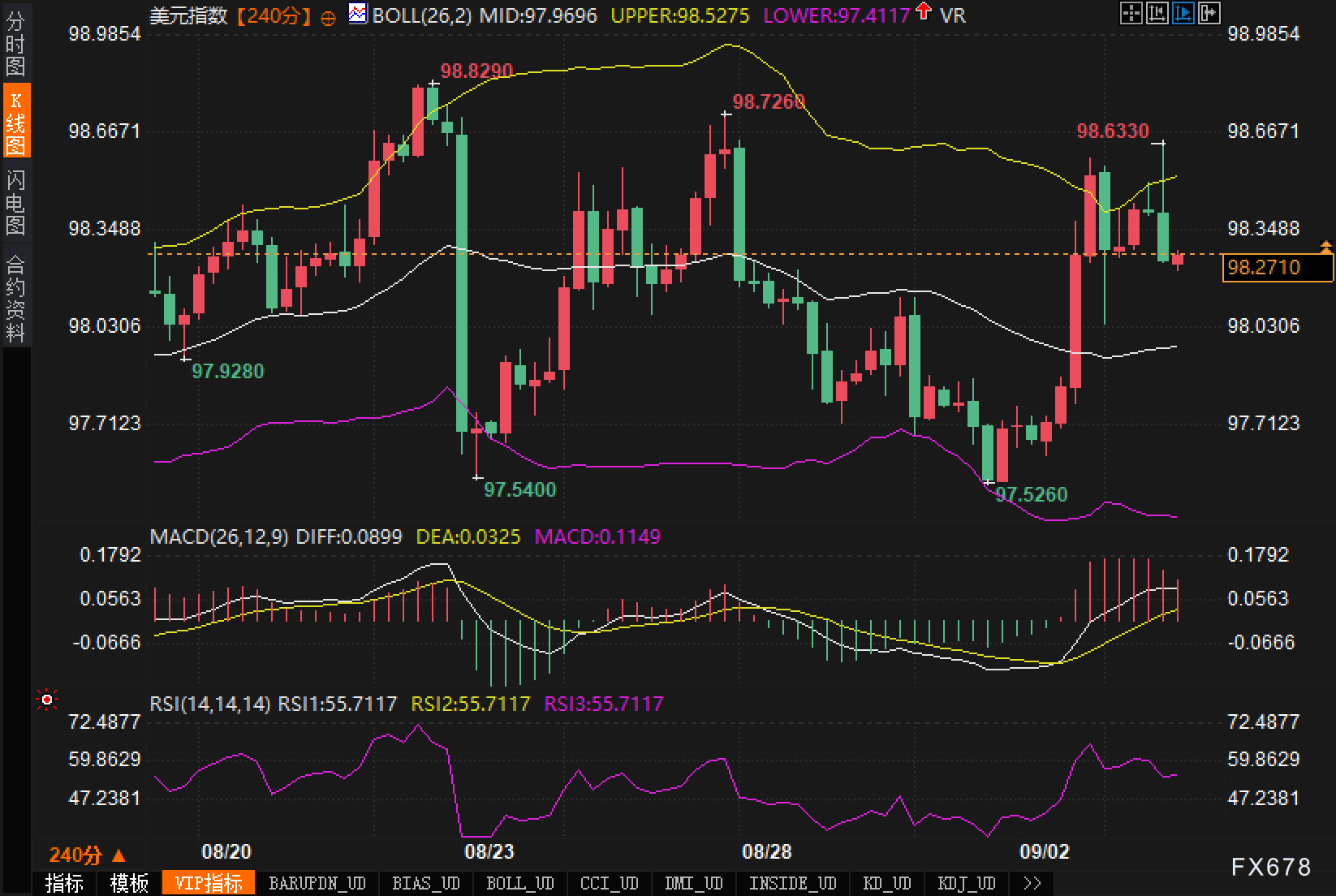 周三 9月3日 欧洲时段 美元指数 DXY 围绕98 20附近整理 受压于近两日高点 隔夜全球长端债券再度波动 美元短线走强后回吐 数据端 本周压轴的就业与通胀联动线索密集 今晚发布的JOLTS 7月职位空缺 离职与裁员 之后有A ...