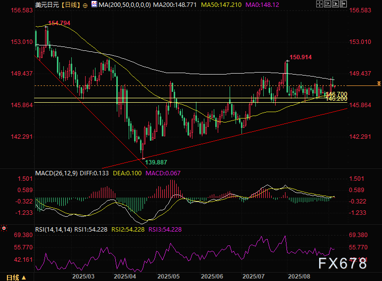 随着美联储降息预期被市场消化且美国经济数据风险隐现,周四(9月4日)美元兑日元持续在147.79至148.19区间内震荡,等待突破动能,美元兑日元未能有效突破200日移动平均线(148.78),促使市场密切关注该货币对重新下行的可能性。 ![]() 美元兑日元未能站稳关键技术水平上方后再度大幅反转,看跌信号逐渐显现,而此时市场正为一系列关键美国数据的公布做准备。 尽管动量指标信号不一,但美元情绪脆弱和美联储降息预期升温这样更广泛的宏观背景,表明了震荡交易状况将持续。 冲高回落再现 美元兑日元未能维持对200日均线的突破后,再度上演剧烈看跌反转。周三在已知阻力区域形成的流星线,增加了汇率回调至147.00下方近期横盘区间下轨的可能性——尤其当它构成潜在黄昏之星形态的第二根K线时,技术性回调概率显著提升。 尽管动量指标略转向多头,但无论是RSI(14)还是MACD都未能提供足够强烈的信号来排除空头仓位。 ![]() 下行方面,市场初步支撑位目标看向50日均线(147.21),若有效跌破该支撑位,有望下探近期低点146.70甚至8月低点146.20。 上行方面,200日均线仍构成强阻力,需有效突破并持稳于200日均线上方,美元兑日元才能逆转看跌倾向。 降息催化剂 从基本面角度看,周四晚间公布的8月ADP就业数据和ISM服务业PMI报告将成为重要影响因素,若出现意外情况,初请失业金数据也会放大波动。 市场对劳动力市场疲软信号保持高度敏感,7月JOLTS调查数据引发的剧烈市场反应便是明证,该报告本身并不特别糟糕,且低回复率导致数据存在巨大误差空间,但即便如此仍足以触发美债和美元的大幅反转。 ![]() 唯一真正的悬念在于:宽松政策究竟是经济疲软所致,还是政治压力推动?无论何种情况,这种背景都令美元难以展开实质性反弹,即便其他货币同样缺乏吸引力,这种困境助推了近期外汇市场反复震荡、缺乏方向的特性,已成为数月来汇市的显著特征。 北京时间11:33,美元兑日元交投于148.18/19。 ![]() |