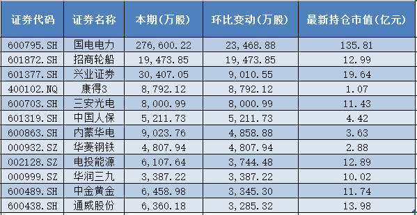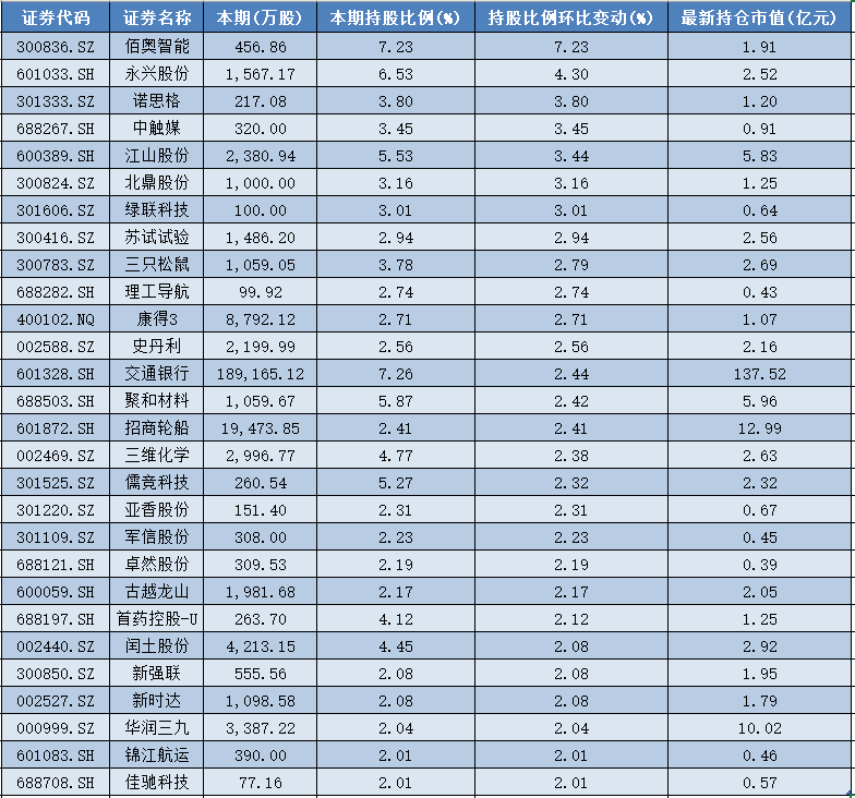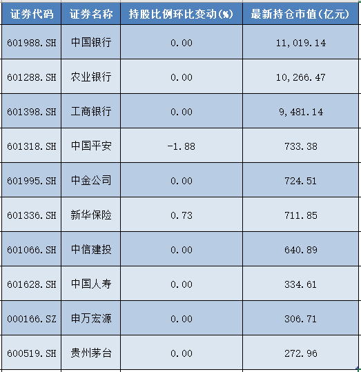 随着A股2025年半年报披露完毕,国家队(包含中国证金、中央汇金、中国证金资管、外管局旗下投资平台、中国证金定制基金)二季度的持仓情况和最新操盘揭晓。 Wind数据统计,截至上半年末,共有945家上市公司的前十大流通股东名单中,出现了“国家队”的身影。 其中,国家队增持了300只个股,对佰奥智能(300836)的持股比例环比增幅最大,达到7.23%。减持了357只个股,对可孚医疗(301087)、大秦铁路(601066)的持股比例环比降幅最高,均减少了5.91%。 同时,二季度国家队新进134只个股的前十大流通股东名单中,但也退出了139只个股的前十大流通股东名单。 28股环比增持超2% 具体而言,增持方面,今年二季度国家队共增持了300只个股,其中持股比例环比(与2025年一季报相较,下同)增加2%以上的共有28只,增加3%以上的有7只,增加4%以上的有2只。 其中,佰奥智能(300836)今年二季度被国家队增持比例最高,环比增加了7.23%,最新持仓市值为1.91亿元。 永兴股份(601033)二季度的持股比例增幅位居第二,达到4.3%,最新持仓市值为2.52亿元。 诺思格(301333)、中触媒(688267)、江山股份(600389)、北鼎股份(300824)、绿联科技(301606)等5只股票,今年二季度被国家队增持比例超过3%,分别增持了3.80%、3.45%、3.44%、3.16%、3.01%,最新持仓市值分别为1.20亿元、0.91亿元、5.83亿元、1.25亿元、0.64亿元。 而三只松鼠(300783)、交通银行(601328)、招商轮船(601872)、古越龙山(600059)、首药控股-U(688197)、华润三九(000999)、锦江航运(601083)等21只个股,国家队二季度持股比例环比增幅均超过2%。 ![]() 而从股份数量的增持角度看,今年二季度国家队增持股份数量超过3000万股的上市公司,共有12家。 其中,国电电力(600795)被国家队增持的股份数量最多,环比增加数量达到2.35亿股,最新持仓市值为135.81亿元。 招商轮船(601872)紧随其后,二季度被国家队增持了1.95亿股,最新持仓市值为12.99亿元。 兴业证券(601377)、康德3(400102)、三安光电(600703)、中国人保(601319)等4股,二季度被国家队增持的股份数量均超过5000万股,分别为9010.55万股、8792.12万股、8000.99万股、5211.73万股。 内蒙华电(600863)、华菱钢铁(000932)、电投能源(002128)、华润三九(000999)、中金黄金(600489)、通威股份(600438)等6股,二季度被国家队增持的股份数量均超过3000万股,分别为4858.88万股、4807.94万股、3744.48万股、3387.22万股、3345.30万股、3285.32万股。 ![]() 可孚医疗、大秦铁路持股比例环比降幅最高 减持方面,今年二季度,国家队合计减持了357只个股,其中20只股票的减持比例超过2%。 具体而言,今年二季度国家队对可孚医疗(301087)和大秦铁路(601006)的减持比例最高,环比降幅超过5%,均减少了5.91%。其中,可孚医疗被国家队清仓,大秦铁路的最新持仓市值为24.52亿元。 中孚信息(300659)、盐田港(000088)二季度的减持比例超过4%,环比分别减少4.74%、4.46%。其中,中孚信息被清仓,盐田港的最新持仓市值为1.77亿元。 华兰股份(301093)、天振股份(301356)、金帝股份(603270)、兴福电子(688545)、达梦数据(688692)、登康口腔(001328)、凌霄泵业(002884)等7股,二季度的减持比例均超过3%,环比分别减少了3.96%、3.83%、3.63%、3.43%、3.43%、3.33%、3.15%。 而海利得(002206)、南京银行(601009)、英派斯(002899)、鼎际得(603255)、新国都(300130)、航材股份(688563)、长虹美菱(000521)、英科再生(688087)、中国海油(600938)等9只股票,二季度的持股比例环比减幅均超过2%。 ![]() 前十大重仓股中2家持股比例变动 整体来看,相较于一季度末,以最新持仓市值看,2025年二季度国家队的前10大重仓股配置思路变化不大,减持了中国平安(601318),增持了新华保险(601336)。 具体而言,目前国家队持仓市值最高的前10只股票,分别为中国银行(601988)、农业银行(601288)、工商银行(601398)、中国平安(601318)、中金公司(601995)、新华保险(601336)、中信建投(601066)、中国人寿(601628)、申万宏源(000166)和贵州茅台(600519)。 其中,仅中国平安和新华保险的持股比例出现变动,中国平安的持股比例环比减少1.88%、新华保险的持股比例环比增加了0.73%。 从持股市值来看,中国银行、农业银行、工商银行继续占据前三位置,最新持股市值分别为1.10亿元、1.23亿元和9481.14亿元。 ![]() (文章来源:澎湃新闻) |