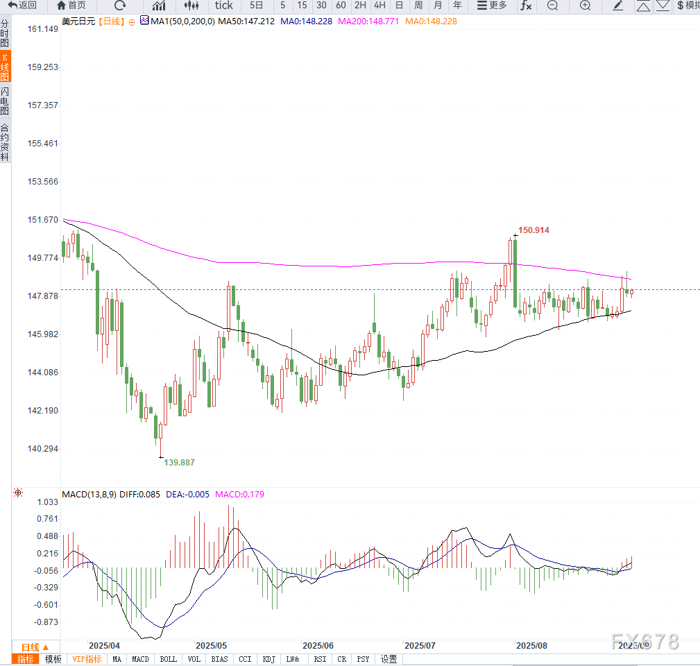 周四亚洲时段,日元对美元的反弹受阻,徘徊在一周低点附近。投资者对日本央行加息的时间与幅度依旧存疑,加之日本国内政治局势动荡,削弱了日元的避险属性。 ![]() 日本执政党干事长森山裕宣布辞职意向,引发市场对岸田政权财政政策的担忧,同时推动30年期国债收益率突破3%,创下纪录高位。 美国方面,7月JOLTS职位空缺降至718万,低于预期的740万,创下2024年9月以来最低水平。这一疲软数据强化了市场对美联储9月降息的预期。 CME FedWatch工具显示,市场已消化超过97%的概率在9月降息25个基点,并预计年底前至少再降息两次。这限制了美元吸引力,从而对美元兑日元构成压制。 从日线来看,USD/JPY在200日均线(148.75-148.80附近)受阻,并从61.8%斐波那契回撤位回落,显示上方压力沉重。RSI等震荡指标维持中性略偏强,提示仍有反复空间。 若跌破148.00,将打开下行至147.40-147.00,甚至146.20-146.00区域的空间。若能企稳于148.30之上,并突破149.00关口,则有望上攻150.00心理位,进一步挑战151.00的8月高点。 ![]() 目前USD/JPY走势受双重力量牵制:一方面,美联储降息预期削弱美元;另一方面,日本央行政策与政治不确定性削弱日元。 短期来看,汇价可能维持在148.00至149.50区间震荡,真正的突破点将取决于周五的非农就业数据。如果非农明显不及预期,美元或遭遇进一步抛售,日元可能迎来一波修复性反弹。 ![]() |