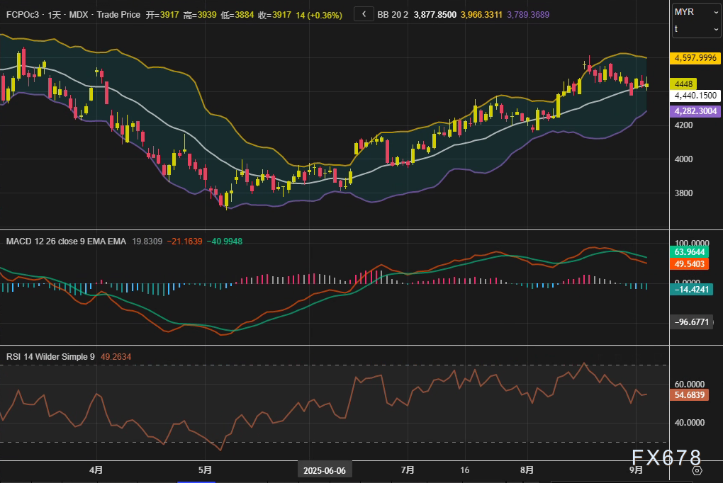 周四(9月4日),马来西亚衍生品交易所(Bursa Malaysia Derivatives Exchange)的基准棕榈油合约FCPOc3(11月交割)小幅收涨7林吉特,涨幅0.16%,报收于4449林吉特/吨,本周累计上涨1.42%。市场交投氛围谨慎,价格在狭窄区间内波动,投资者在长周末前调整头寸,等待下周马来西亚棕榈油局(MPOB)即将公布的供需数据提供明确方向。 ![]() 尽管棕榈油本周录得涨幅,但市场仍面临库存压力。一项行业调查显示,马来西亚8月棕榈油库存预计连续第六个月上升,尽管出口需求复苏,但产量增速仍超过出口增长。这一数据若得到确认,将延续库存累积的利空格局。 不过,市场对9月出口需求持乐观态度。雪兰莪经纪公司Pelindung Bestari的董事Paramalingam Supramaniam明确指出:“9月出口需求预计保持强劲,但产量数据将是决定下一阶段市场方向的关键因素。”他的观点直接反映了交易员对短期供需平衡的密切关注。 关联市场:外部油脂与原油走势分化 棕榈油的价格走势与其他植物油密切相关。同日,大连商品交易所的豆油主力合约下跌0.14%,棕榈油合约下跌0.21%;芝加哥期货交易所(CBOT)的豆油价格亦小幅下跌0.1%。这些竞争性油脂的疲软表现,一定程度上限制了棕榈油的上涨空间。 原油市场同样带来压力。国际油价延续前一日超过2%的跌幅,因市场关注OPEC+周末会议可能提出的增产计划。原油走弱降低了棕榈油作为生物柴油原料的经济吸引力,对价格构成间接压制。 技术面:关键指标呈中性偏弱信号 从技术分析角度看,棕榈油合约日线级别的布林带(20,2)中轨位于3877.85林吉特,价格目前运行于中轨上方,但上轨3966.33附近存在阻力。MACD指标(12,26,9)虽为正值,但柱状图收缩至-40.99,显示上涨动能有所减弱。RSI(14)读数49.26,接近中性区间,表明市场暂未出现明显超买或超卖信号。 机构观点:等待数据打破僵局 目前多家知名机构认为,棕榈油市场短期缺乏单一方向驱动,交易逻辑将围绕下周MPOB数据展开。Pelindung Bestari的Supramaniam强调:“产量数字将是关键决定因素。”若产量增速放缓或出口超预期回升,可能推动价格突破当前震荡区间;反之,若库存累积速度加快,市场或再度承压。 展望:数据前市场或维持震荡 马来西亚交易所因公共假日于9月5日休市,市场流动性在长周末前趋于清淡。投资者需密切关注下周MPOB报告的实际数据与市场预期的差异,以及9月上旬的出口高频数据(如ITS、SGS报告)。 尽管中长期库存压力仍在,但若需求端持续回暖,或为价格提供底部支撑。需要注意的是,若未来长线预测与当前震荡走势方向相反,需警惕数据公布后市场情绪的快速切换,逻辑上需依赖实际数据验证预期差。 ![]() ![]() |