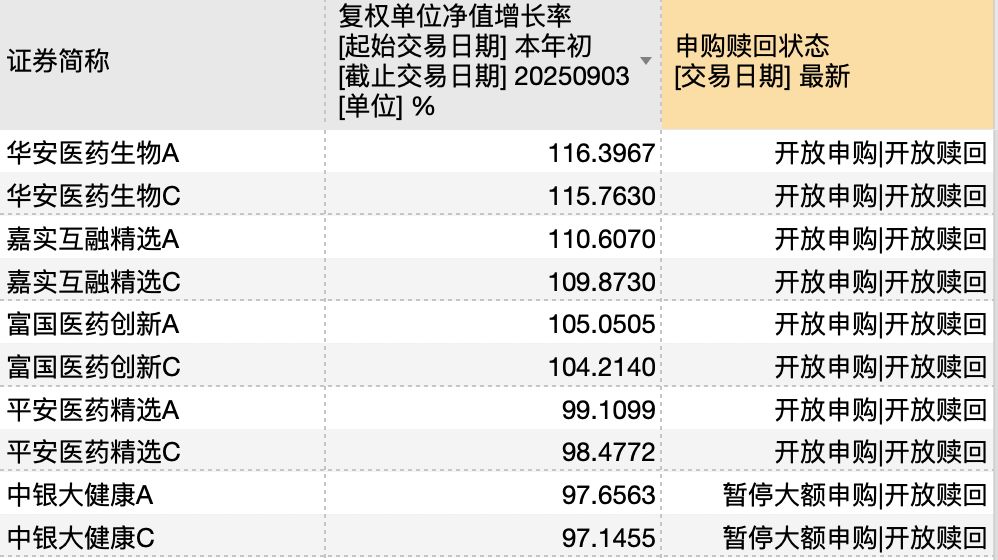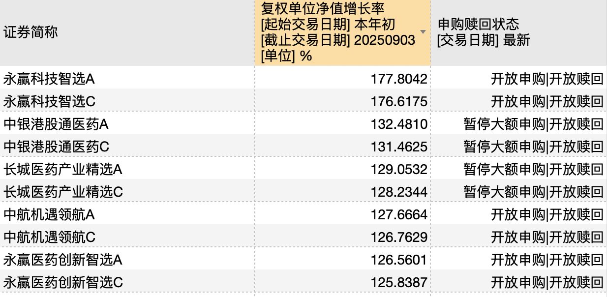 说明:年内普通股票型基金头部业绩产品申购赎回状态(截至9月3日) 来源:Wind
