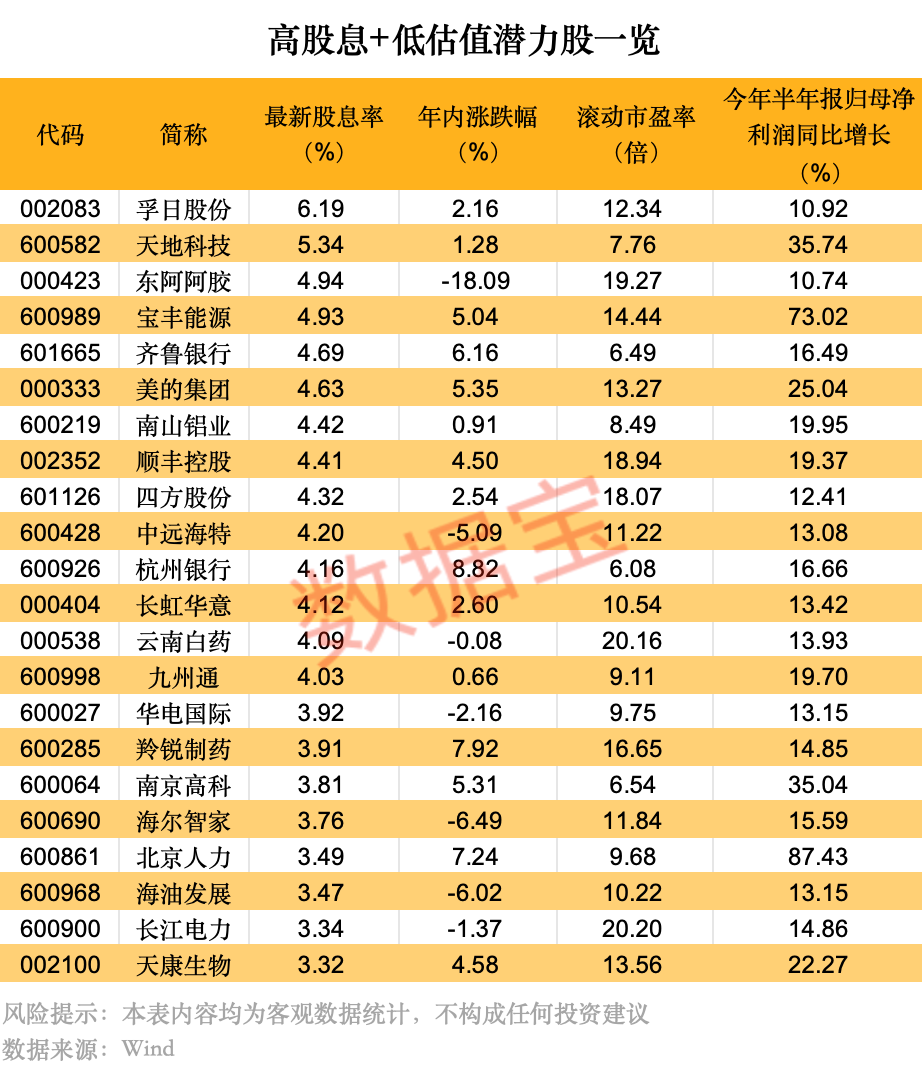在市场风格切换的当下,高股息+低估值潜力股票更具备防守能力。 据新华社9月4日消息,国务院办公厅印发《关于释放体育消费潜力进一步推进体育产业高质量发展的意见》(以下简称《意见》),提出到2030年,培育一批具有世界影响力的体育企业和体育赛事,体育产业发展水平大幅跃升,总规模超过7万亿元,在构建新发展格局中发挥重要作用。 《意见》提出6项20条重点举措。一是扩大体育产品供给,丰富体育赛事活动,优化赛事服务管理,发展户外运动产业,培育壮大冰雪经济,推动体育用品升级。二是激发体育消费需求,拓展体育消费场景,举办体育消费活动,实施消费惠民举措,扩大体育消费群体。三是壮大体育经营主体,做大做强体育企业,搭建优质对接平台,深化体育产业交流合作。四是培育体育产业增长点,深化行业融合发展,促进区域协调发展,推动体育数字化发展。五是强化产业要素支撑,加强人才队伍建设,加大金融支持力度,丰富体育场地供给。六是提升服务保障水平,营造良好市场环境,做好体育产业统计监测工作。 体育消费成为扩内需的重要抓手。早前,国常会指出,发展体育产业和体育消费是落实扩大内需战略的重要内容,要激发体育消费需求,拓展体育消费场景,鼓励各地举办体育消费活动,实施消费惠民举措,更好满足群众消费升级需求。 体育产业市场空间巨大。国家统计局数据显示,2017~2023年我国体育产业总产出从21987亿元增长至36741亿元。2023年体育产业占国内生产总值(GDP)比重为1.15%,比上年提高0.07个百分点。 据证券时报·数据宝统计,A股中体育产业相关概念股近30只,合计市值超2600亿元,今年以来平均涨幅近23%,天府文旅、金陵体育、共创草坪、雪人集团年内涨幅均超50%。 从机构关注度来看,华利集团、浙江自然、共创草坪、浙数文化等概念股获10家以上机构关注。 华利集团主营运动休闲鞋,公司上半年实现营收126.6亿元,同比增长10.4%。华源证券表示,公司作为我国运动鞋履代工头部企业,凭借短期行业需求修复、中长期扩产以及客户结构变化驱动ASP提升带来量价双升预期,估值长期看具备提升空间。 浙江自然上半年实现营收6.85亿元,同比增长14.22%;归母净利润1.46亿元,同比增长44.53%。信达证券表示,公司从传统户外床垫出发,到新能源车精致轻奢露营生活方式,加强水上用品和保温箱包的市场拓展,公司引领露营经济,贴合大消费发展趋势。 ![]() 市场风格出现高低切换 9月4日,A股市场风格大切换,高成长的科技板块下挫,CPO板块的“易中天”——新易盛、天孚通信、中际旭创均跌超13%;AI芯片板块的寒武纪-U、海光信息跌幅均超11%;PCB板块的生益电子、沪电股份和东山精密纷纷大跌。 ![]() 与此同时,消费股及高股息板块上涨,农业银行大涨超5%,股价再创新高;消费板块中的细分领域商业百货、食品饮料和旅游酒店涨幅靠前。 ![]() 信达证券近期研报指出,当下存在风格转换的条件:一是去年9月以来,小盘成长已经持续走牛近1年;二是价值类板块机构持仓系统性偏低,公募考核新规和量化动量策略均有望强化向价值风格转向;三是居民资金正在通过更多渠道流入,当期业绩重要性有所下降;四是本轮市场上涨,AI算力等少数强主线板块虽然业绩兑现较好,但并没有扩散到更多行业,风格较难像业绩强的牛市中稳定走强;五是历年四季度更容易出现风格的高低切。 高股息+低估值潜力股出炉 在上述背景下,证券时报·数据宝梳理了更具防守能力的高股息低估值潜力股,条件如下:1.以2024年派息计算的最新股息率高于3%;2.滚动市盈率低于25倍;3.年内涨幅低于10%;4.今年上半年及2024年归母净利润均增长超10%。 统计显示,符合上述条件的个股有22只。9月2日以来,上述个股累计跌幅中位数为1.19%,海油发展累计跌超4%,东阿阿胶等3股累计跌幅超3%,多数个股累计跌幅在1%左右,齐鲁银行、美的集团和长江电力累计涨幅为正。 入选的个股中,有东阿阿胶、美的集团、长江电力、海尔智家、云南白药等白马股。 从股息率来看,孚日股份超6%,天地科技超5%,东阿阿胶、宝丰能源等多股超4%。孚日股份2024年全年每股派息达到0.3元(含税),最新股价不足5元/股,公司今年上半年归母净利润同比增长超10%,去年归母净利润同比增长超20%。 从市盈率来看,杭州银行、齐鲁银行、南京高科最新滚动市盈率均在6倍左右,天地科技、南山铝业、北京人力等个股不足10倍。北京人力今年上半年归母净利润同比增长超87%,2023年和2024年公司均大手笔分红。 东阿阿胶年内跌幅超18%,远远跑输食品饮料行业涨幅。东阿阿胶是老牌白马股,2019年公司业绩下滑。近年来,东阿阿胶盈利开始恢复性增长,2024年归母净利润达到15.57亿元(历史最高为20.85亿元),今年上半年归母净利润继续增长,达到8.18亿元。此外,海尔智家、海油发展、中远海特年内跌幅仍有5%以上。 ![]() (文章来源:证券时报网) |
