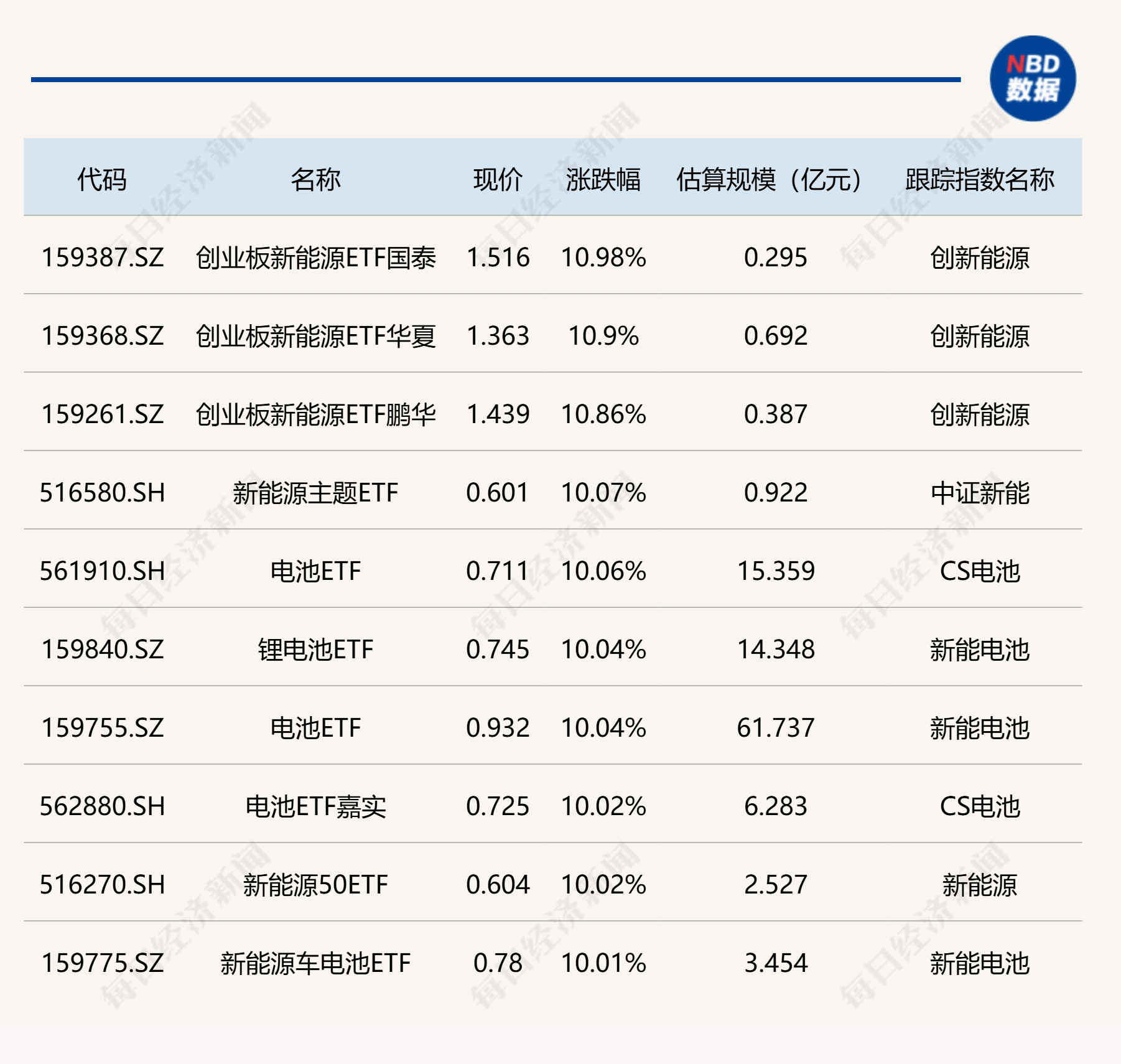 每经记者|叶峰 每经编辑|赵云 市场全天震荡走高,创业板指领涨,沪指重新站上3800点。从板块来看,固态电池概念股集体爆发,光伏、风电概念股表现活跃,CPO概念股震荡反弹。 ETF上涨方面,多 ...
