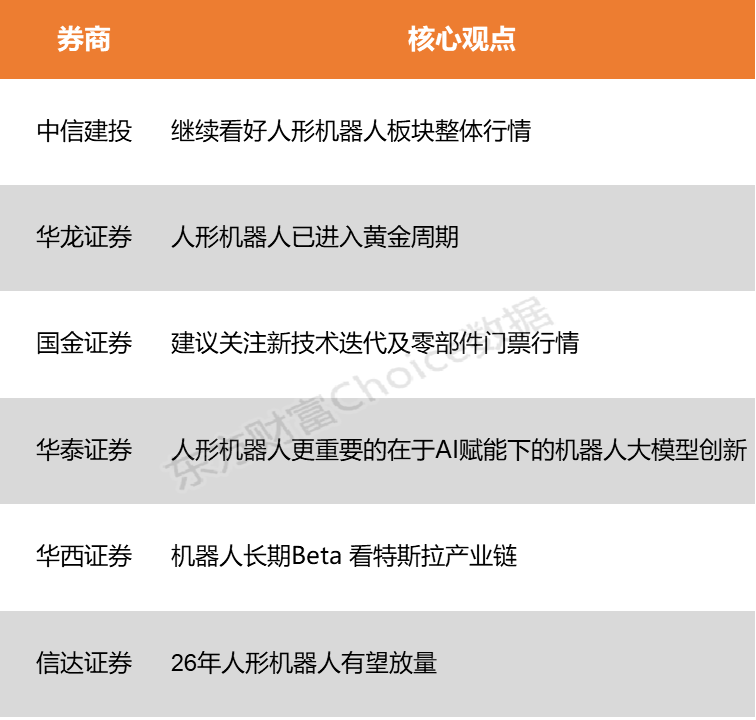 A股三大指数今日涨跌不一,截止收盘,沪指涨0.38%,深证成指涨0.61%,创业板指跌0.84%。沪深两市成交额超过2.4万亿,较上一交易日放量逾千亿。行业板块多数收涨,能源金属、医疗器械、化肥行业、电机、游戏、航运港口板块涨幅居前,旅游酒店、保险、商业百货板块跌幅居前。个股方面,上涨股票数量接近4000只,逾80只股票涨停。 9月7日,特斯拉开通名为“TeslaAI”的微博账号,并发布首条微博“我一直在努力改善自己的身材”,展示了新版本的Optimus人形机器人。对比Optimus2.5和2.0版本,可以看到新版机器人正努力向人体形态靠拢,其关节处更加流畅,金属“皮肤”表面看起来更加光滑,呈现在外的线路和执行器更少。据teslaoracle报道,特斯拉正在美国特斯拉工厂的试点生产线上生产Optimus 2.5机器人。对于人形机器人,马斯克曾表示,预计今年年底将推出人形机器人Optimus第3版原型机,2026年开始批量生产,五年内实现年产100万台Optimus机器人。 中信建投表示,预计国产链条下半年来自于资本运作、订单出货等消息将不断催化。继续看好板块整体行情,推荐产业趋势更优、放量更快的传感器、灵巧手、垂类应用端、国产供应链条等环节。华龙证券指出,建议关注高价值量的零部件,包括丝杠、传感器、电机及减速器等,尤其关注与特斯拉、华为等巨头有供应链合作的公司。 ![]() 中信建投:继续看好人形机器人板块整体行情 特斯拉Optimus始终是机器人行情的核心,前期量产波折后对于明年展望逐步清晰,将利好板块β表现;此外马斯克巨额薪酬计划中也提及产品目标之一为累计交付100万台机器人,进一步表明特斯拉将在该领域继续深耕;后续V3的发布以及量产推进也值得关注。此外,宇树明确四季度提交上市申请文件的节奏,优必选取得2.5亿元的具身智能人形机器人合同,预计国产链条下半年来自于资本运作、订单出货等消息将不断催化。继续看好板块整体行情,推荐产业趋势更优、放量更快的传感器、灵巧手、垂类应用端、国产供应链条等环节。 华龙证券:人形机器人已进入“技术突破→量产降本→场景渗透”的黄金周期 人形机器人已进入“技术突破→量产降本→场景渗透”的黄金周期,建议关注高价值量的零部件,包括丝杠、传感器、电机及减速器等,尤其关注与特斯拉、华为等巨头有供应链合作的公司。 国金证券:建议关注新技术迭代及零部件门票行情 建议关注新技术迭代及零部件门票行情,预计供应链将重新启动,下半年各环节定点将陆续落地,包括:触觉传感器、谐波减速器、摆线针轮、高功率密度电机、peek以及粉末冶金工艺。 华泰证券:人形机器人更重要的在于AI赋能下的机器人大模型创新 产业初期交付订单数并非关键指标,核心仍在于能否初步形成正确模型范式和数据飞轮。中国制造业企业大规模布局人形机器人赛道有望带来硬件成本非线性下降,硬件的卡点或不是核心难题,更重要的在于AI赋能下的机器人大模型创新,即通过实现智能泛化进一步打开市场需求,最终落地空间较大的ToC市场。 华西证券:机器人长期Beta 看特斯拉产业链 全年来看,1)客户维度:机器人长期Beta看 T 链, 其CEO表示今年目标生产数百台 Optimus V3 原型机, 5 年内能够达到百万台量级; 2 )产品维度:潜在变化大的环节包括灵巧手传动方案 / 触觉传感器构型、类 RV 对髋部 / 肩部谐波的替代、轻量化以塑代钢、万向节替代关节轴承等; 3 )资本维度:头部国产人形主机厂的证券化进程不断加速,正在成为板块情绪全新催化剂。 信达证券:26年人形机器人有望放量 26年人形机器人有望放量。25年人形机器人还在做设计升级、数据积累和泛化训练。预计25年底部分工厂应用场景的人形机器人可以定型,行业有望进入销量上升期,随着产业链成熟度的提升,预计人形机器人的价格也将逐渐下降,届时行业内的供应链或将走向集中,板块格局的确定性有望得到提升。 (本文不构成任何投资建议,投资者据此操作,一切后果自负。市场有风险,投资需谨慎。) (文章来源:东方财富研究中心) |