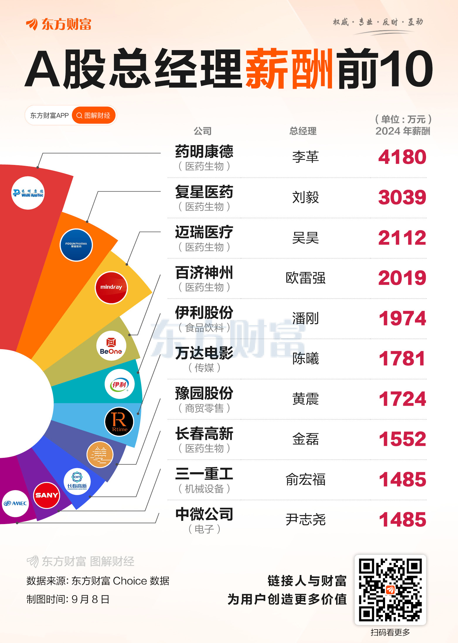 ![]() 日前,特斯拉公司向首席执行官埃隆·马斯克提出了一项新的薪酬协议,若方案通过,未来十年内马斯克最多可额外获得4237万股特斯拉股票。若特斯拉股价按规划上涨,且公司达成特定里程碑,这一薪酬将接近1万亿美元,即平均每年1000亿美元,是2024年A股上市公司总经理(含CEO等)年薪总和的近100倍。 据东方财富Choice数据显示,2024年全部A股总经理薪酬(不包括年报未披露)达74.36亿元,平均薪酬为141万元,薪酬超千万的有21人。其中薪酬最高的是药明康德董事长兼总经理李革,达4180万元,薪酬最低的是亚联发展的董事长兼总经理王永彬,为0.66万元。 从行业来看,总经理薪酬最高的十家公司中一半属于医药生物行业,分别为药明康德、复星医药、迈瑞医疗、百济神州和长春高新,剩余5家公司分属于食品饮料、传媒、商贸零售、机械设备和电子行业。 (文章来源:东方财富研究中心) |