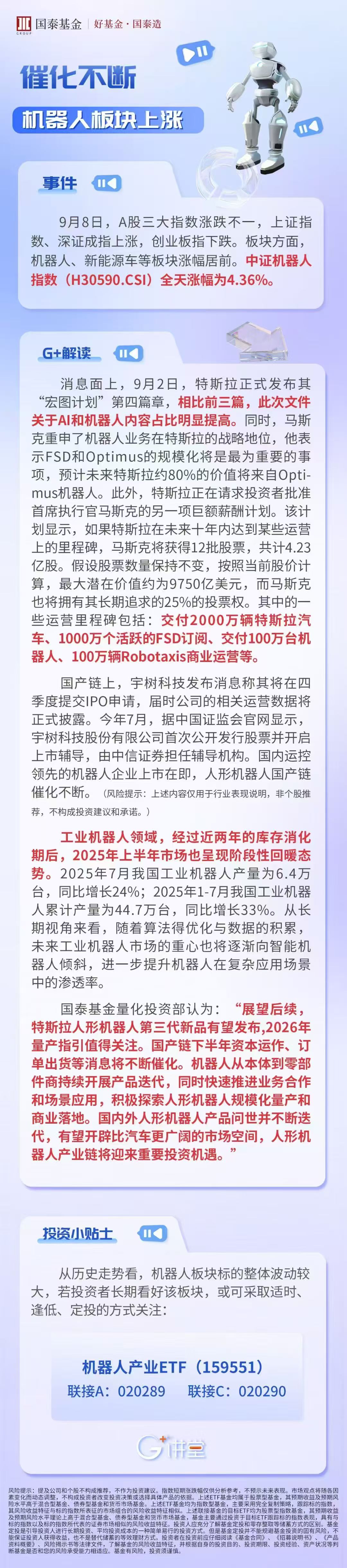 催化不断,机器人板块上涨,关注机器人产业ETF(159551)