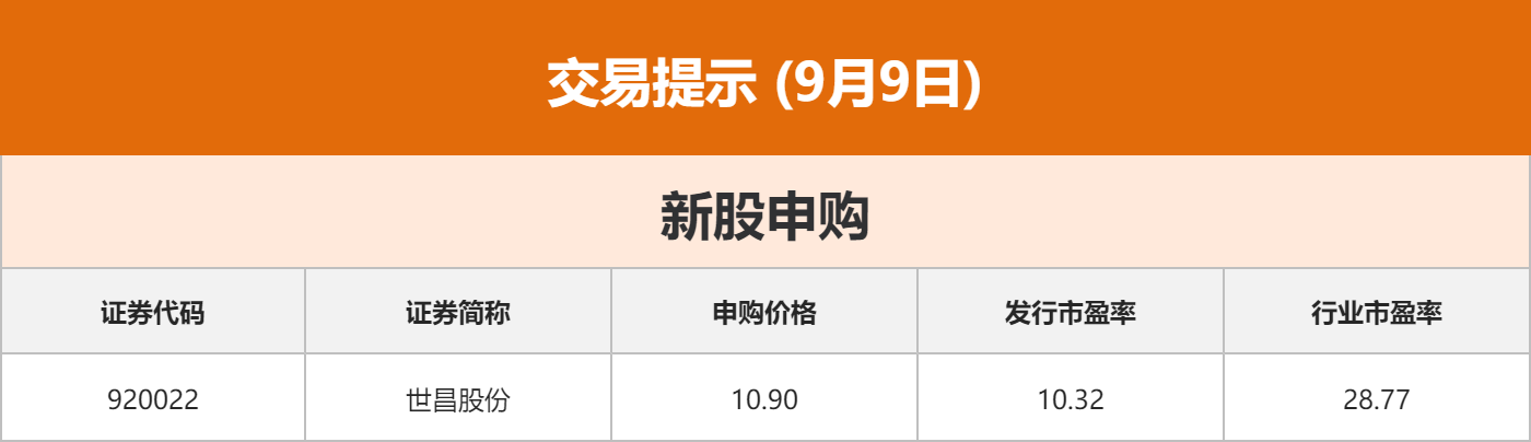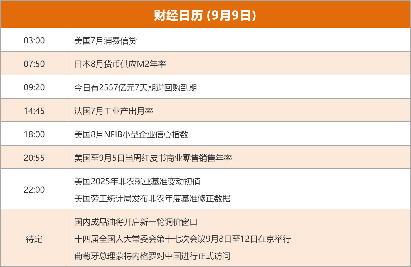![]() 每日精选卫星通信: 9月8日,工业和信息化部官宣向中国联通颁发了卫星移动通信业务经营许可。工信部表示,按照《关于优化业务准入促进卫星通信产业发展的指导意见》有关部署,近日向中国联通颁发了卫星移动通信业务经营许可,后者可依法开展手机直连卫星等业务,深化应急通信、海事通信、偏远地区通信等场景应用,丰富通信服务与产品供给。 中芯国际复牌: 中芯国际公告称,公司拟向国家集成电路产业投资基金等发行股份购买中芯北方49%的股权,股票自2025年9月1日停牌,预计停牌时间不超过10个交易日,并于9月9日起复牌。中芯北方作为中芯国际的控股子公司,主要为客户提供不同工艺平台的12英寸集成电路晶圆代工及配套服务。本次交易完成后,上市公司在标的公司的持股比例将从51%上升至100%。 宇树科技回应: 9月8日晚间,针对“宇树科技期望的IPO估值高达500亿元”的消息,宇树科技相关负责人向第一财经记者回复称:“截至目前,公司内外没有讨论过IPO估值的事情,相关估值信息不实。” 对外贸易: 对外贸易法修订草案8日提请全国人大常委会会议审议。这个共11章80条的修订草案将跨境服务贸易负面清单管理制度等改革举措上升为法律制度,确保改革举措落地见效。草案强调维护国家主权、安全、发展利益,增加服务国家经济社会发展的规定,对接国际高标准经贸规则,促进对外贸易新业态新模式发展。草案优化对外贸易发展环境,加强知识产权保护,建立贸易调整援助制度,完善反制措施和法律责任,增强制度刚性。 东盟自贸区: 国新办9月8日下午3时举行新闻发布会,商务部副部长鄢东在会上说,中国东盟自贸区3.0版谈判已经全面完成,首次系统性构建覆盖数字基础设施“硬联通”与规则标准“软联通”的全链条合作框架,实现规则升级。中方将与东盟保持沟通,积极推进签署程序,推动年底前正式签署中国—东盟自贸区3.0版议定书。 乘用车市场: 乘联分会9月8日发布最新数据显示,2025年8月全国乘用车市场零售199.5万辆,同比增长4.6%,环比增长8.2%;今年以来累计零售1,474.1万辆,同比增长9.5%。这一数据不仅再创8月零售销量历史新高,也较2023年8月192万辆的历史最高水平增长3.7%。记者统计了13家A/H股上市车企在8月的表现,其中有10家车企实现同比增长,占比为77%。 黄金: 近期国际黄金市场再次呈现强势上涨态势,COMEX黄金于9月8日盘中触及3655.5美元/盎司的历史新高,年内累计涨幅已超35%,其中近11个工作日加速上涨,期间更是录得近8%的涨幅。此外中国央行已连续10个月增持黄金。9月7日,中国人民银行公布的数据显示,截至8月末,我国黄金储备为7402万盎司,较7月末的7396万盎司增加6万盎司。 双边本币互换: 中国人民银行行长潘功胜在出席国际清算银行行长例会期间分别与欧洲中央银行行长拉加德、瑞士国家银行行长施莱格尔和匈牙利国家银行行长沃尔高签署双边本币互换协议。中欧双边本币互换规模为3500亿元人民币/450亿欧元,协议有效期三年。中瑞双边本币互换规模为1500亿元人民币/170亿瑞士法郎,协议有效期五年。中匈双边本币互换规模为400亿元人民币/1.9万亿匈牙利福林,协议有效期五年。 热点题材固态电池: 据媒体报道,2025年9月23-24日,第七届高比能固态电池关键材料技术大会将于苏州举办。本次大会将聚焦固态电解质、正负极材料、界面工程、智能制造及产业化进展等热点议题,深入探讨高比能固态电池的未来发展趋势及挑战。为致力于固态电池技术开发的企业,科研院校,以及新能源汽车、储能、消费电子等终端企业提供信息交流的平台,开展产、学、研合作,助推固态电池产业化发展。 AI应用: 9月8日,上海市市场监管局印发《上海市支持人工智能赋能广告业创新发展的若干措施》(以下简称《若干措施》),其中提出,推动“AI+数字广告”生态集聚。支持徐汇区、普陀区加快推动“AI+数字广告”创新集聚发展,支持“AI+数字广告”产业创新服务平台建设,按照核定总投资给予最高50%、最高2000万元支持。 光伏: 近日,四川英发睿能科技股份有限公司正式向港交所递交主板上市申请,拟赴港IPO。这家从安徽天长迁往四川宜宾的光伏“独角兽”,成立于2016年的英发睿能,是全球领先的专业光伏电池片制造商。根据弗若斯特沙利文数据,按2024年出货量计算,英发睿能是全球第三大N型TOPCon电池片专业化制造商,全球市场份额达14.7%。 人形机器人: 9月8日,自变量机器人(以下简称“自变量”)宣布完成近10亿元的A+轮融资,并开源具身大模型WALL-OSS。据记者了解,在这一轮参投的股东名单中,除了领投的阿里云之外,自变量A轮股东美团也进行了跟投。此外,9月7日,特斯拉开通名为“TeslaAI”的微博账号,并发布首条微博“我一直在努力改善自己的身材”,展示了新版本的Optimus人形机器人。据teslaoracle报道,特斯拉正在美国特斯拉工厂的试点生产线上生产Optimus 2.5机器人。 深空经济: 近日,首届深空经济与产业发展大会在安徽合肥召开。大会以“聚焦深空经济,引领产业未来”为主题,在全国首次提出深空经济概念框架,系统梳理深空十大产业方向,即深空资源开发、深空互联网、深空能源、深空生物、深空运输、深空智能、深空建造、深空旅游、深空安全、深空文化十大产业方向,预计2040年全球深空经济规模将达到万亿美元。 算力产业链: 在上周博通的业绩沟
