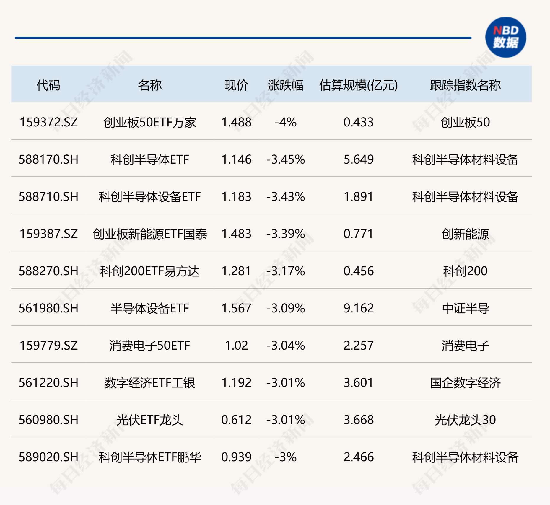 每经记者|叶峰 每经编辑|彭水萍 市场全天震荡调整,三大指数集体收跌。从板块来看,黄金板块逆势上涨,电池板块延续活跃表现,银行概念股震荡拉升。下跌方面,半导体概念股出现调整。 ETF上涨 ...