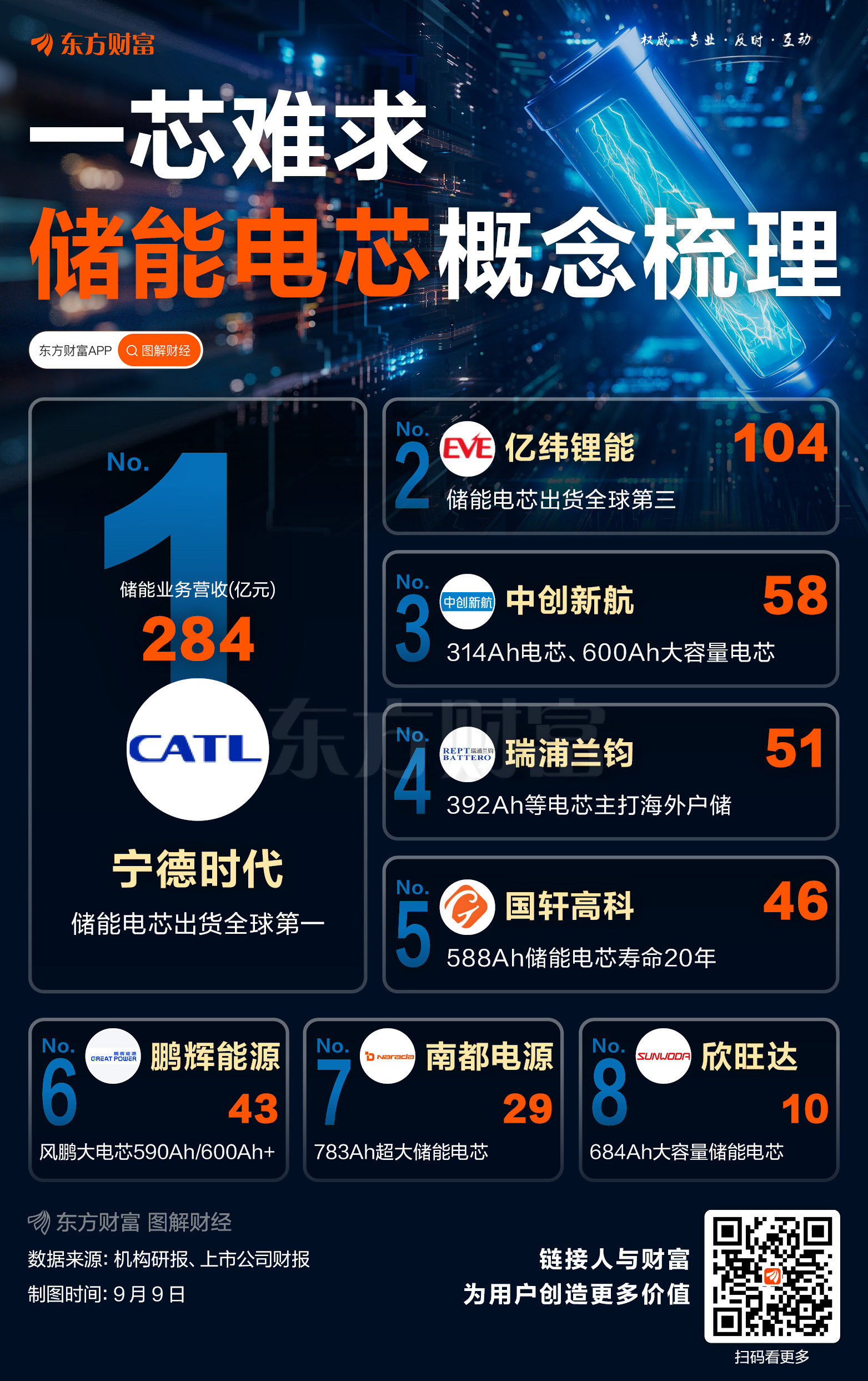 受益需求利好,储能电芯个股进入9月表现强势。东方财富Choice数据显示,9月以来国轩高科涨超30%,亿纬锂能涨超26%,南都电源、鹏辉能源涨超16%;港股市场上中创新航涨超27%,瑞浦兰钧涨超10%。 消息面上,据 ...