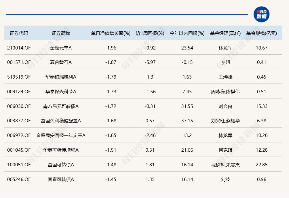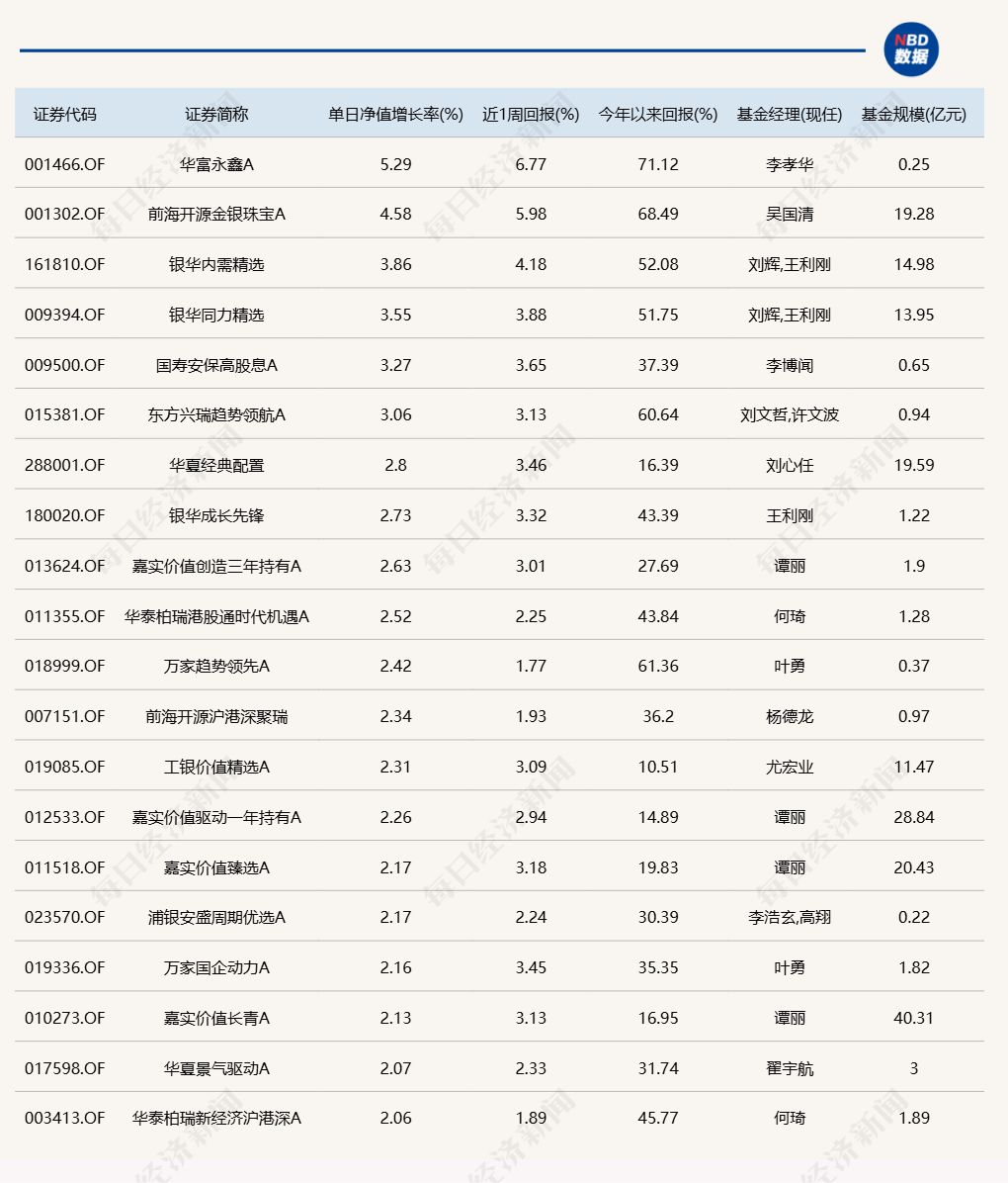 每经记者|肖芮冬 每经编辑|赵云 9月9日,市场全天震荡调整,三大指数集体收跌。板块方面,黄金、地产、银行等板块涨幅居前,半导体、消费电子、医疗服务等板块跌幅居前。两市超4000只个股下跌,沪深两市成交额2.12万亿元,较上一个交易日缩量3002亿。 下面一起来看今天公募基金的表现。 (注:榜单1、榜单2仅选取灵活配置型、偏股混合型和普通股票型三类产品作为主动基金的代表,纳入统计;债基相关榜单包括各类主、被动债券型基金) 1.单日涨幅榜 2.单日跌幅榜 3.单日债基涨跌幅榜 4.晚间值得关注的消息 【寒武纪:定增申请获证监会同意注册批复】 寒武纪(688256.SH)公告称,公司于近日收到证监会出具的《关于同意中科寒武纪科技股份有限公司向特定对象发行股票注册的批复》。批复同意公司向特定对象发行股票的注册申请,有效期为12个月。公司将按照相关法律法规和批复文件的要求,在规定期限内办理本次向特定对象发行股票的相关事项,并及时履行信息披露义务。 |