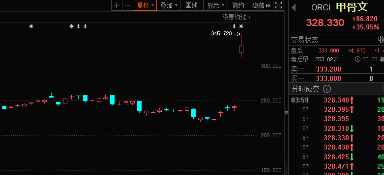 AI领域大牛股频出。 AI领域再度出现标志性事件。科技巨头甲骨文大涨近36%,股价创出历史新高,市值超过9300亿美元。在股价大涨带动下,公司创始人身家达到3930亿美元,一度取代马斯克成为全球首富,连带着其34岁中国籍妻子登上热搜。 今年以来AI领域牛股频出,英伟达作为全球龙头,股价屡屡创出新高;A股小伙伴新易盛、中际旭创、天孚通信、胜宏科技等也一路向上。此次甲骨文大涨,会否带动AI应用股价上涨,值得密切关注。与此同时,甲骨文A股小伙伴也热度飙升。 甲骨文股价暴涨 美东时间9月10日,美股巨头甲骨文公布2026财年一季度财报后,股价单日破纪录暴增,盘中涨幅一度超过40%,收盘时涨近36%,股价达历史新高,收盘为328.33美元/股,公司市值超9300亿美元。 ![]() 截至8月的2026财年第一财季报告显示,甲骨文季度经调整每股收益为1.47美元,略低于分析师预期的1.48美元;营收为149.3亿美元,亦低于预期的150.4亿美元。 但在最新的财报电话会上,甲骨文宣布,其剩余履约义务(RPO)已飙升至4550亿美元,同比暴增359%,震动全球科技圈。这一爆炸性增长主要源于甲骨文与OpenAI、xAI、Meta等全球顶尖AI公司签订了大规模云合同,使其成为AI模型训练的关键基础设施提供商。 多家投行更新其对这家科技巨头的目标价。Wolfe Research将甲骨文目标价从300美元大幅上调至400美元,较最新收盘价仍有20%多的上涨空间,对应1.12万亿美元市值。其他投行中,美银上调至368美元,杰富瑞上调至360美元,Piper Sandler上调至330美元,D.A. 戴维森上调至300美元,蒙特利尔银行上调至345美元。 甲骨文联合创始人拉里·埃里森的身家也大幅飙升,一度暴增980亿美元,创下有史以来单日最大财富增长纪录,总财富升至3930亿美元,一度取代马斯克成为世界首富。 令人意外的是,甲骨文创始人妻子登上百度热搜。公开资料显示,甲骨文创始人拉里·埃里森现任妻子朱乔琳(Keren Zhu),1991年出生于中国辽宁省沈阳市,是拉里·埃里森第六任妻子。 A股小伙伴曝光 今天早盘(9月11日),A股市场AI硬件方向领涨,CPO概念、PCB概念、铜缆高速连接等题材涨幅居前。 与甲骨文关系密切的个股早盘涨势明显,其中,万亿市值科技龙头工业富联再度涨停,股价再创历史新高。资料显示,工业富联是AI服务器全球代工龙头,第二季度公司整体服务器营收增长超50%,云服务商服务器营收同比增长超150%,AI服务器营收同比增长超60%。 ![]() 新炬网络连续一字涨停。根据公司半年报,公司原厂软硬件及服务销售主要为向IT数据中心等IT基础设施提供Oracle、IBM、HP、阿里云、南大通用、人大金仓、达梦、OceanBase、RedHat、Cloudera等多个品牌的软硬件及相关服务。 ![]() 另外,杰创智能、荣联科技、神州数码等个股均大幅上涨。 这类股受益 作为全球企业IT软件龙头公司,甲骨文的云业务展现了巨大的成长潜力,A股市场云计算公司值得关注。 中邮证券认为,从中长期看,算力基础设施供需缺口持续扩大,既因AI大模型需求爆发,也源于千行百业智能化转型。AIInfra作为连接算力硬件与AI应用的枢纽,需适配硬件迭代、响应应用需求,受双重驱动呈高景气。这形成算力层硬件升级、AIInfra层技术突破、应用层场景落地的多层次投资机遇,云计算价值也将在AI渗透中重估,迎来新增长。 A股市场上云计算概念股有200多只,其中中国移动、海康威视、工业富联、科大讯飞等个股均有20多家机构评级,焦点科技、中天科技、紫光股份、宇信科技等个股均有10多家机构评级。 根据机构一致预测,有34只概念股明年净利增速超50%,海量数据、中国长城、中科金财等个股均有望翻倍增长。从杠杆资金净买入情况来看,奥飞数据、兆龙互连、中国长城等个股9月以来融资净买入均超千万元。 ![]() (文章来源:证券时报网) |