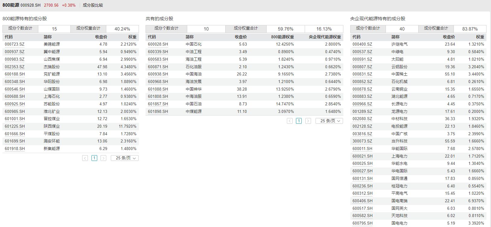 再来对比两个指数目前的估值水平。Wind数据显示,国证绿色电力指数目前的市盈率TTM回升到了历史50%分位以上,而中证绿色电力指数目前的市盈率TTM还在历史35%左右分位。 2、能源ETF 目前有2只ETF名称都是能源ETF,其中能源ETF(159930.SZ)管理公司是汇添富基金,跟踪的指数是中证能源指数。 中证能源指数是以中证800指数为样本空间,属于中证800行业指数的一级行业指数。目前共有成分股25只。个股平均流通市值约为279亿元。 另一只能源ETF(561260.SH)管理公司是工银瑞信基金,跟踪的指数是中证国新央企现代能源指数。 中证国新央企现代能源指数则是由国新投资有限公司定制,主要选取国务院国资委下属业务涉及绿色能源、化石能源、能源输配等现代能源产业的50只上市公司证券作为指数样本。个股平均流通市值约为345亿元。 进一步对比两个指数的成分股可以发现,共同的成分股只有10只,中证能源指数独有的成分股是15只,中证国新央企现代能源指数独有的成分股是40只。 由于成分股的差异比较大,所以从两个指数过往的表现来看,收益表现也有比较大的差别。从近一年和近三年来看,中证国新央企现代能源指数的年化收益都更高,不过在近五年,中证能源指数的收益表现更好。 此外,在年化波动率方面,从近一年到近五年,都是中证能源指数更高。 最后来对比两个指数的估值水平。Wind数据显示,目前中证能源指数的市盈率TTM还在历史40%分位以下,但是中证国新央企现代能源指数的市盈率TTM已经回升到历史70%分位以上,这一点从近一年的收益情况也能看出,近一年中证国新央企现代能源指数的涨幅更大。 封面图片来源:图片来源:每经记者 孔泽思 摄 |