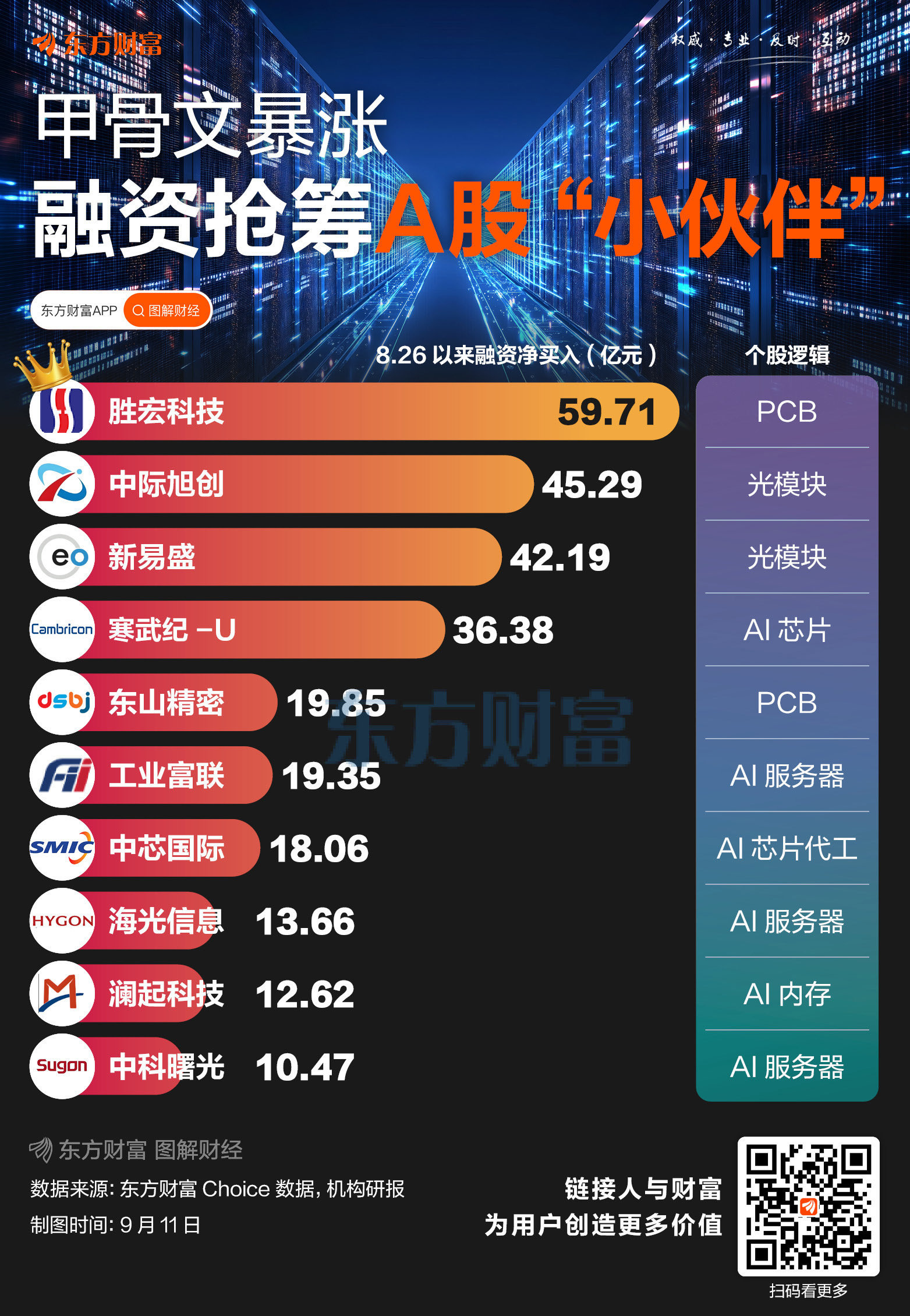 ![]() 受益隔夜甲骨文暴涨产生的“海外映射”效应,周四A股市场上一众AI板块“小伙伴”集体爆发,海光信息20CM涨停,胜宏科技涨超16%,中际旭创涨超14%,新易盛、天孚通信涨超13%,工业富联2连板,东山精密、中科曙光等涨停。 东方财富Choice数据显示,自8月26日大盘调整以来,融资净买额前20个股中有10个为AI概念股,前20个股融资净买总额为525亿元,其中净买入AI概念股278亿元,占比为53%。 具体来看,PCB龙头胜宏科技排名第一,融资净买额超59亿,光模块两大龙头中际旭创、新易盛分别位列第二、第三,融资净买额均超40亿元,寒武纪-U、东山精密、工业富联、中芯国际、海光信息、澜起科技、中科曙光等个股融资净买额在37亿元至10亿元之间不等。 消息面上,据证券时报,美东时间9月10日,美股巨头甲骨文公布2026财年一季度财报后,股价单日破纪录暴增,盘中涨幅一度超过40%,收盘时涨近36%,股价达历史新高,收盘为328.33美元/股,公司市值超9300亿美元。公司创始人身家达到3930亿美元,一度取代马斯克成为全球首富。 上述财报显示,甲骨文季度经调整每股收益为1.47美元,略低于分析师预期的1.48美元;营收为149.3亿美元,亦低于预期的150.4亿美元。 但值得注意的是,甲骨文截至第一财季末的“剩余履约义务”(即已签约但未交付的合同收入)同比暴增359%,达到4550亿美元,这一数字远超市场预期。 这一爆炸性增长主要源于甲骨文与OpenAI、xAI、Meta等全球顶尖AI公司签订了大规模云合同,使其成为AI模型训练的关键基础设施提供商。 其中占据大头的是甲骨文与OpenAI签署一份自2027年开始为期约5年、总值3000亿美元的算力采购合约,合约金额不仅远超过OpenAI目前的营收、同时也是史上规模最大的云端合约之一。 根据摩根士丹利分析师的预测,从现在到2029年这段期间,全球数据中心支出将逼近3万亿美元,当中有1.4兆美元是来自科技巨擘的资本支出。 AI市场对于算力的需求在中国市场亦有体现:今年8月中国电信研究院发布《智算产业发展研究报告(2025)》显示,到2035年,人工智能将为中国的GDP贡献超过人民币11万亿元,大概占GDP的4%至5%,可能带动算力的需求是十倍,甚至百倍的增长。 (文章来源:东方财富研究中心) |